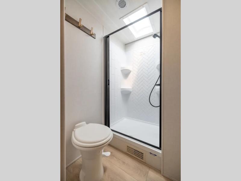 With any Grand Surveyor travel trailer by Forest River you will enjoy turn-key ready-to-go features and quality construction! Each model includes Azdel composite walls and a gel coated fiberglass front cap with an automotive style tinted windshield for a sleek look. There are friction hinge black glass entry door(s), an adjustable platform step with a night light, plus Goodyear tires and a power tongue jack for easy towing. The interior will have you feeling right at home with roller shades, residential faucets, sinks, and bathroom vanity, plus Surf(x) seamless countertops throughout. You can also plan for adventure with a 2" rear accessory and exterior spray port, and there are slam latch exterior baggage doors throughout to keep all your gear secure. Other stand-out features include a central vacuum system, a 200 watt solar panel with a 30 amp controller, a tankless water heater, carpet-free interiors, and the list goes on!