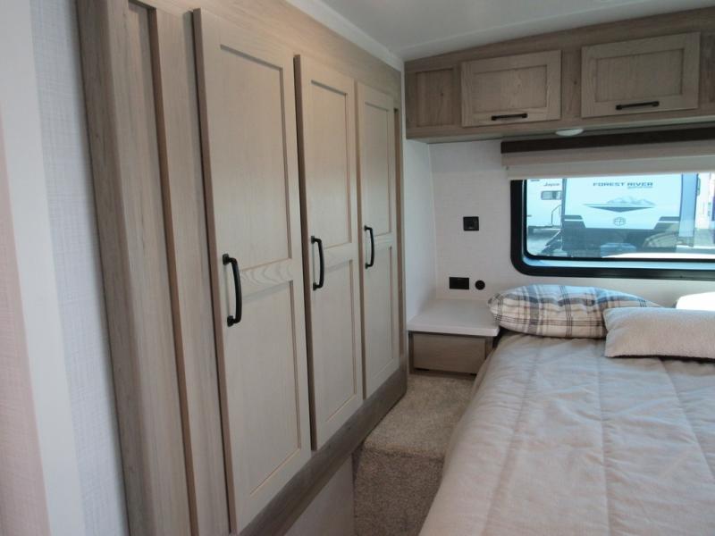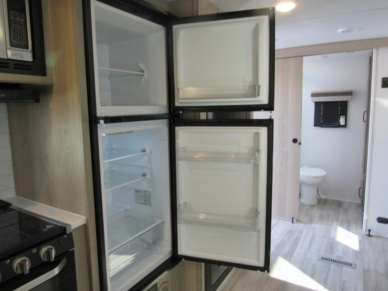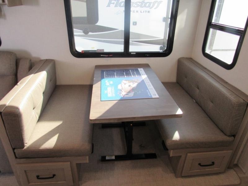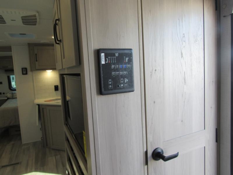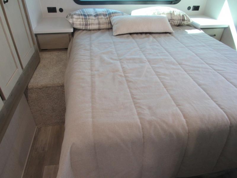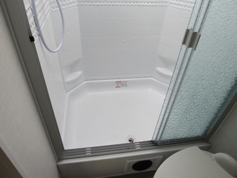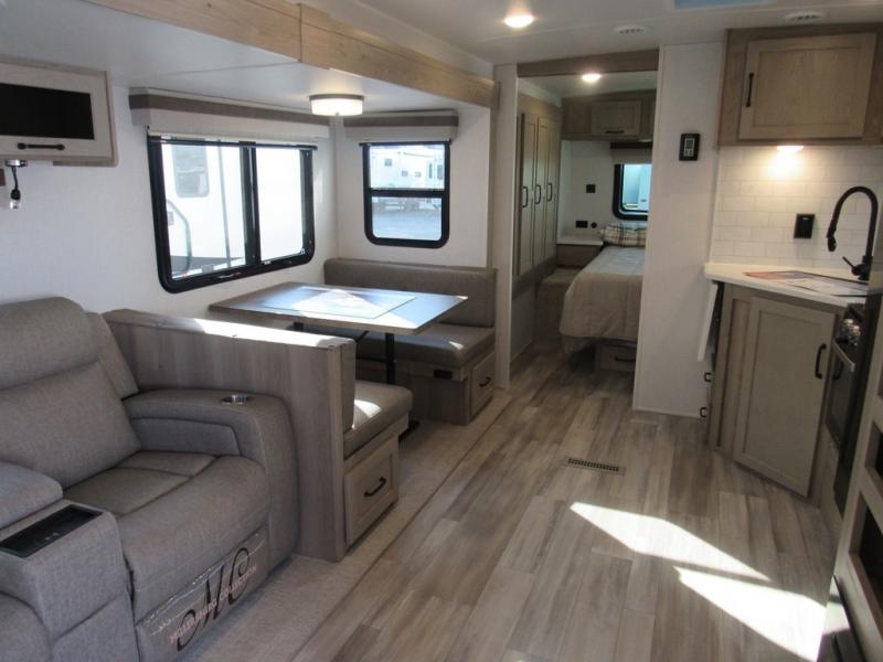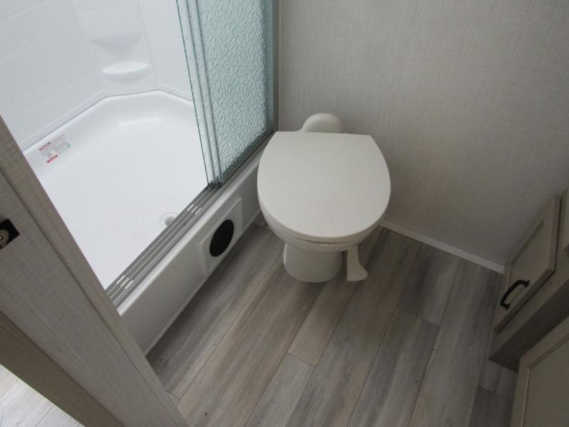 With any Grand Surveyor travel trailer by Forest River you will enjoy turn-key ready-to-go features and quality construction! Each model includes Azdel composite walls and a gel coated fiberglass front cap with an automotive style tinted windshield for a sleek look. There are friction hinge black glass entry door(s), an adjustable platform step with a night light, plus Goodyear tires and a power tongue jack for easy towing. The interior will have you feeling right at home with roller shades, residential faucets, sinks, and bathroom vanity, plus Surf(x) seamless countertops throughout. You can also plan for adventure with a 2" rear accessory and exterior spray port, and there are slam latch exterior baggage doors throughout to keep all your gear secure. Other stand-out features include a central vacuum system, a 200 watt solar panel with a 30 amp controller, a tankless water heater, carpet-free interiors, and the list goes on!