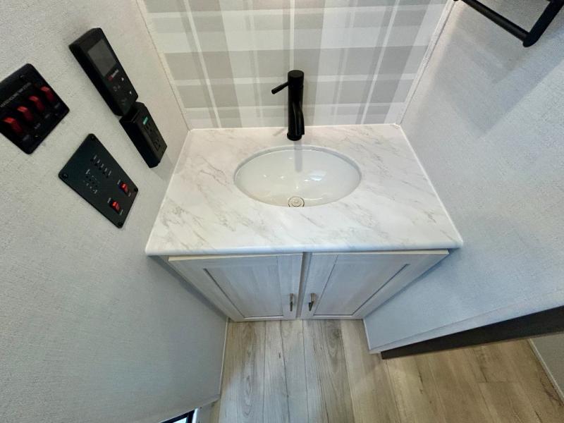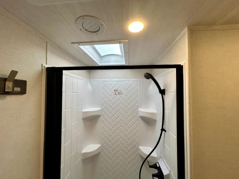 With any Grand Surveyor travel trailer by Forest River you will enjoy turn-key ready-to-go features and quality construction! Each model includes Azdel composite walls and a gel coated fiberglass front cap with an automotive style tinted windshield for a sleek look. There are friction hinge black glass entry door(s), an adjustable platform step with a night light, plus Goodyear tires and a power tongue jack for easy towing. The interior will have you feeling right at home with roller shades, residential faucets, sinks, and bathroom vanity, plus Surf(x) seamless countertops throughout. You can also plan for adventure with a 2" rear accessory and exterior spray port, and there are slam latch exterior baggage doors throughout to keep all your gear secure. Other stand-out features include a central vacuum system, a 200 watt solar panel with a 30 amp controller, a tankless water heater, carpet-free interiors, and the list goes on!