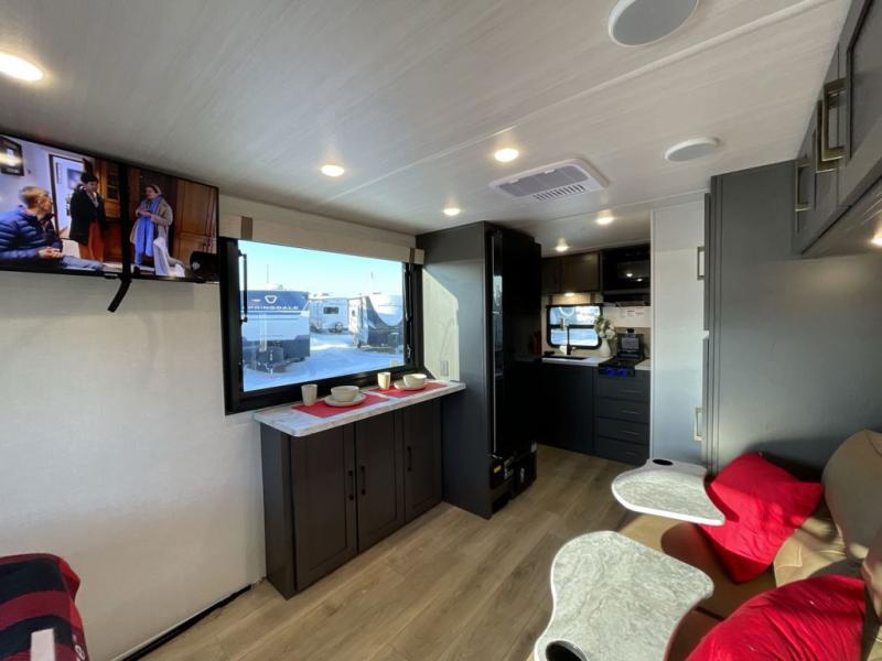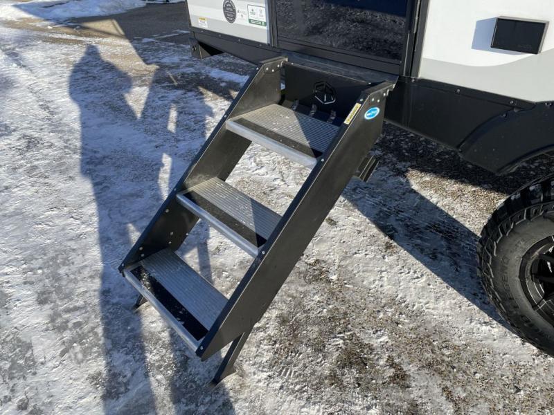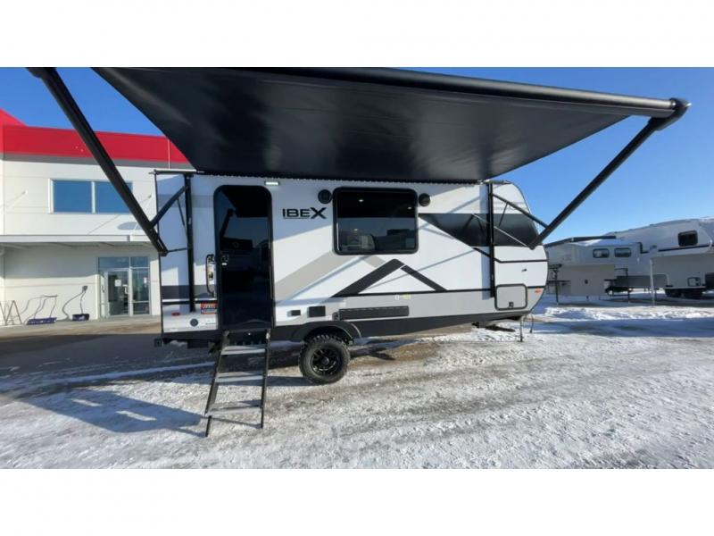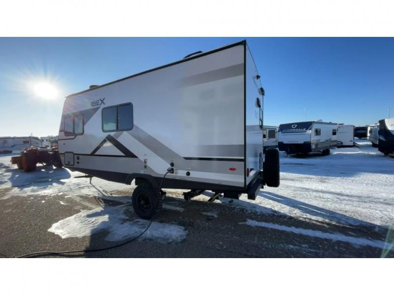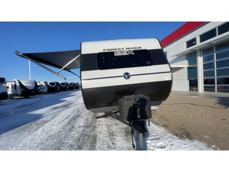 The Forest River IBEX travel trailers are extended season ready, and adventure approved! They are built with a fully walkable PVC roof, a welded aluminum structure, and laminated walls and slide outs with Azdel composite panels. There are also all-terrain tires with TPMS, a hot and cold exterior spray port, and large holding tanks for added convenience when you're set up off-grid. The USB-C ports inside and out will help you keep your electronics charged, and the premium window treatments will make your trailer feel more like home. The optional Black Canyon Beast Mode Package is available with an independent suspension, a 400-watt solar package, a fresh water filter, and a Maxxair roof vent cover.