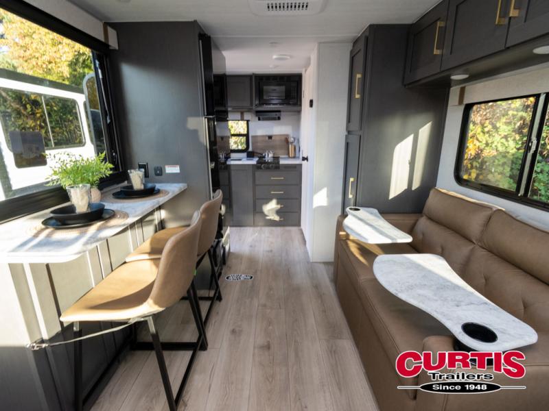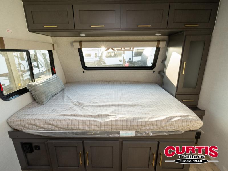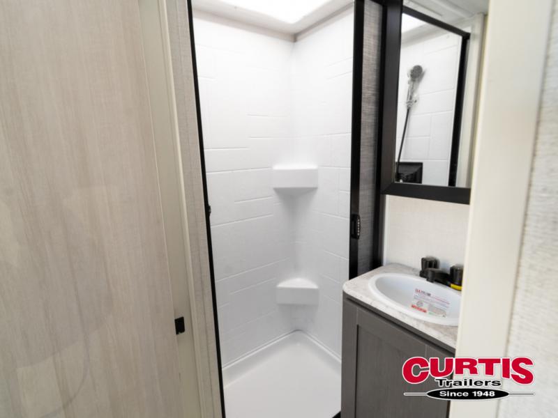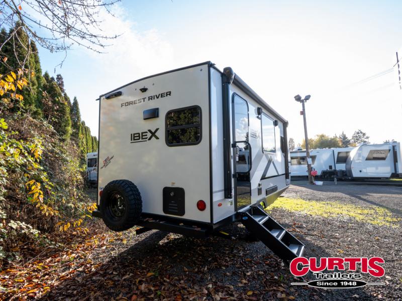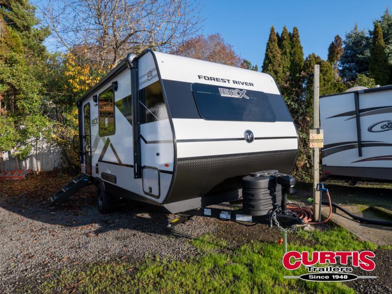 The Forest River IBEX travel trailers are extended season ready, and adventure approved! They are built with a fully walkable PVC roof, a welded aluminum structure, and laminated walls and slide outs with Azdel composite panels. There are also all-terrain tires with TPMS, a hot and cold exterior spray port, and large holding tanks for added convenience when you're set up off-grid. The USB-C ports inside and out will help you keep your electronics charged, and the premium window treatments will make your trailer feel more like home. The optional Black Canyon Beast Mode Package is available with an independent suspension, a 400-watt solar package, a fresh water filter, and a Maxxair roof vent cover.