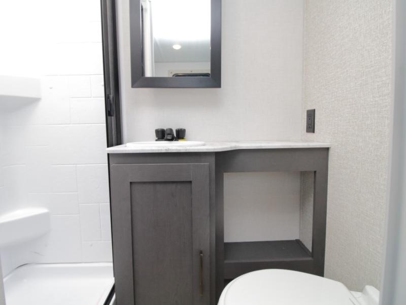 Rear corner full bathroom offering privacy and convenience at the campground