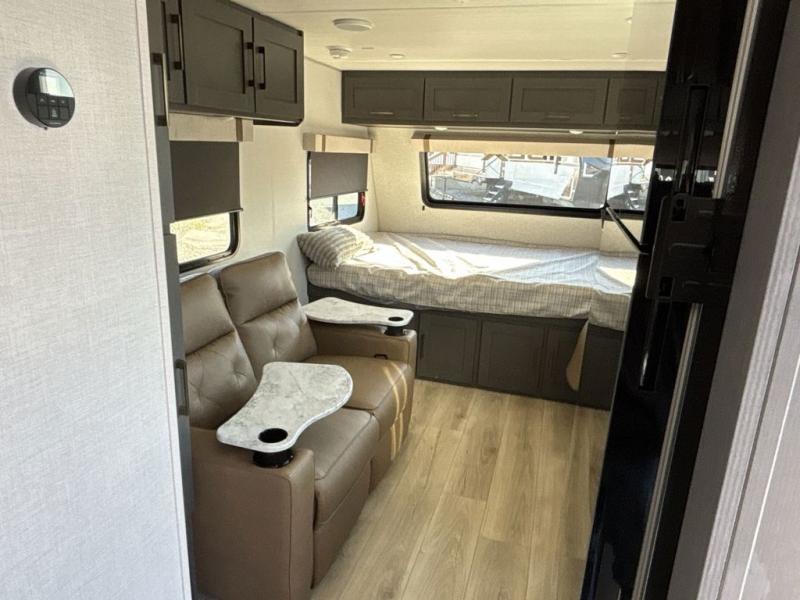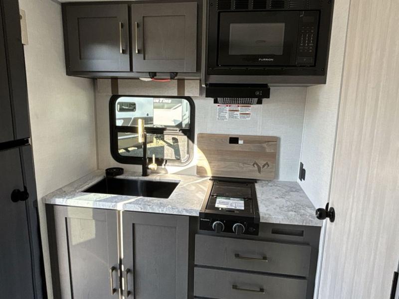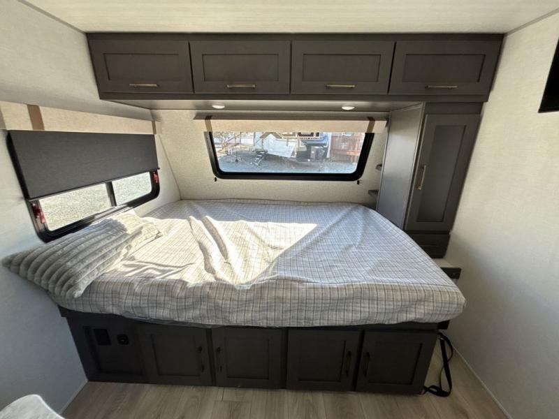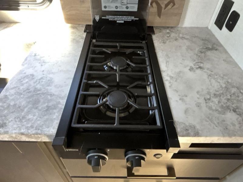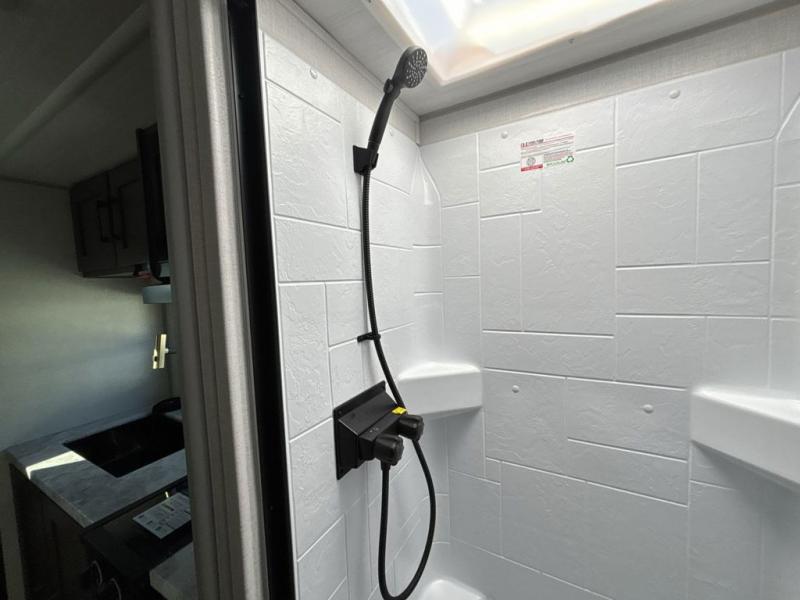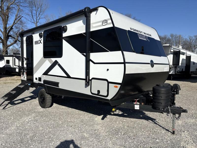 The Forest River IBEX travel trailers are extended season ready, and adventure approved! They are built with a sealed underbelly with forced heat and radiant foil barrier, along with an aluminum framed floor and 12V tank heaters. There are also all-terrain tires with TPMS, a 200-watt solar panel, a power tongue jack, and roof ladder prep. Inside, you'll love the Surf(X) seamless countertops and the large kitchen sink with a cup washer, plus there is Bluetooth audio with marine grade speakers so you can listen to your favorite tunes.