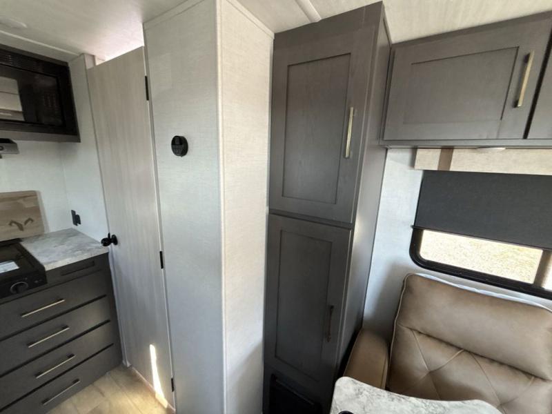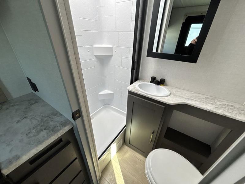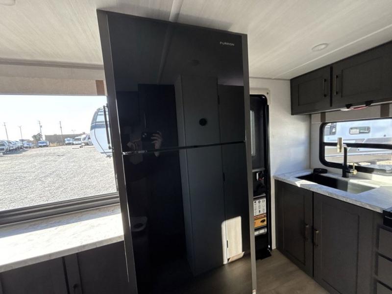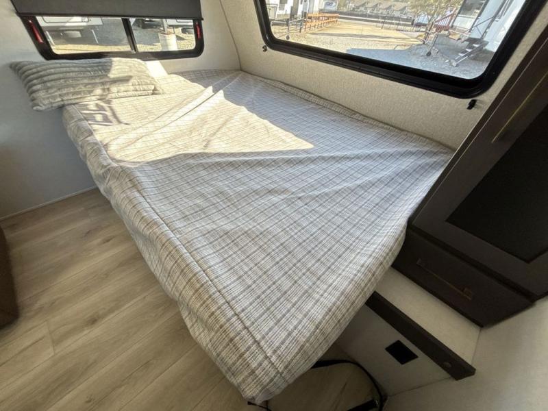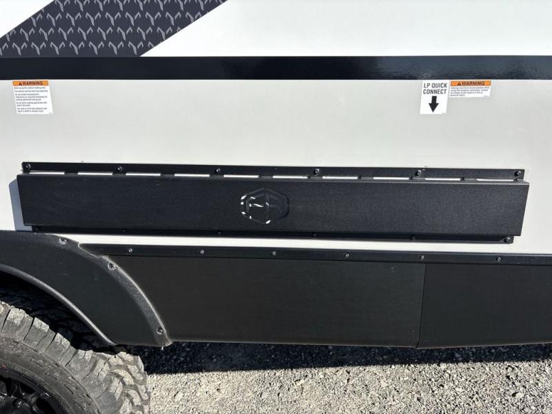 Grab your hiking gear and hit the road in this no-slide travel trailer! The front queen bed will provide a comfortable place to rest your head each night, and the rear corner full bath will let you freshen up without having to use the camp's facilities. The full kitchen includes an air fryer microwave plus a 12V refrigerator to keep food stocked. You'll find comfortable seating space on the jackknife sofa, and you can enjoy your morning coffee at the counter with two stools and a flip-up window! This unit also includes an outside kitchen with a grill to keep the fish fry odors outside! When the optional Black Canyon Beast Mode Package is chosen on this model, you'll find an independent suspension, an additional 200-watt solar panel, totaling 400 watts of solar, a fresh water filter and more!
