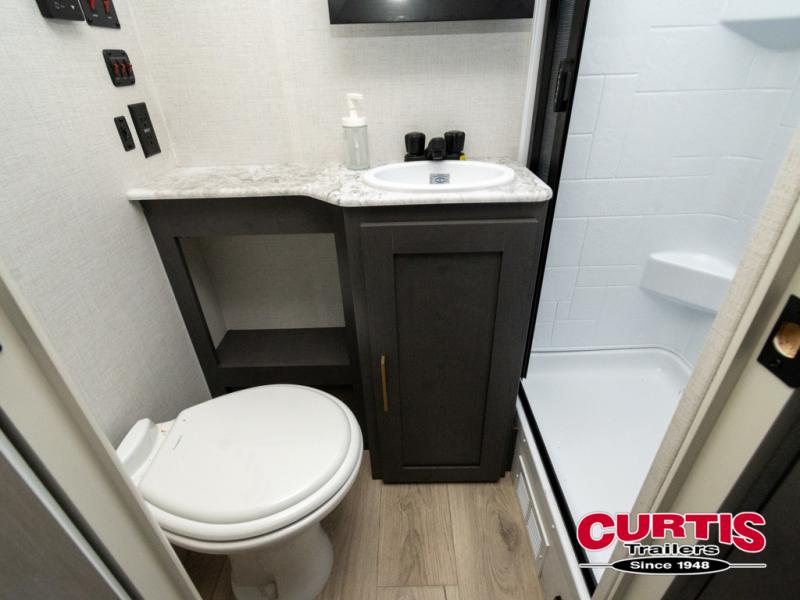 The Forest River IBEX travel trailers are extended season ready, and adventure approved! They are built with a fully walkable PVC roof, a welded aluminum structure, and laminated walls and slide outs with Azdel composite panels. There are also all-terrain tires with TPMS, a hot and cold exterior spray port, and large holding tanks for added convenience when you're set up off-grid. The USB-C ports inside and out will help you keep your electronics charged, and the premium window treatments will make your trailer feel more like home. The optional Black Canyon Beast Mode Package is available with an independent suspension, a 400-watt solar package, a fresh water filter, and a Maxxair roof vent cover.