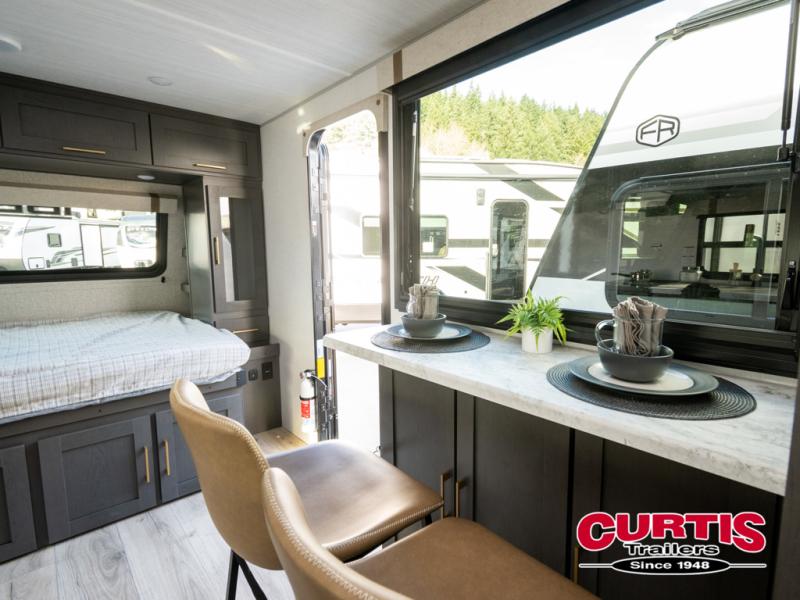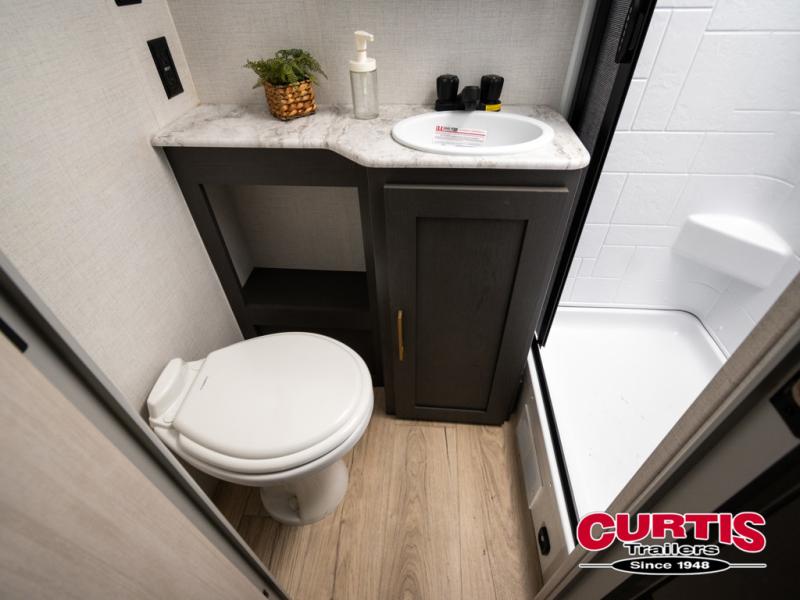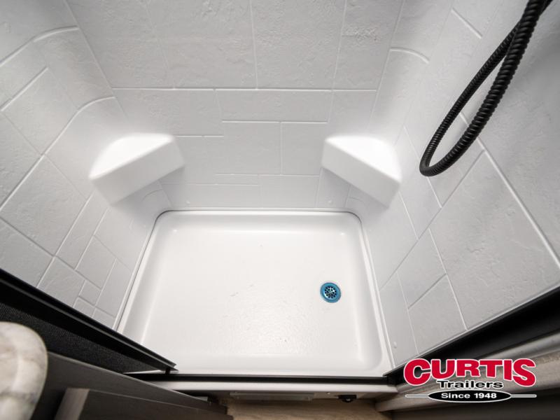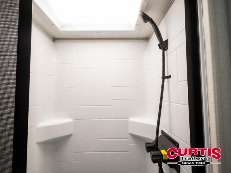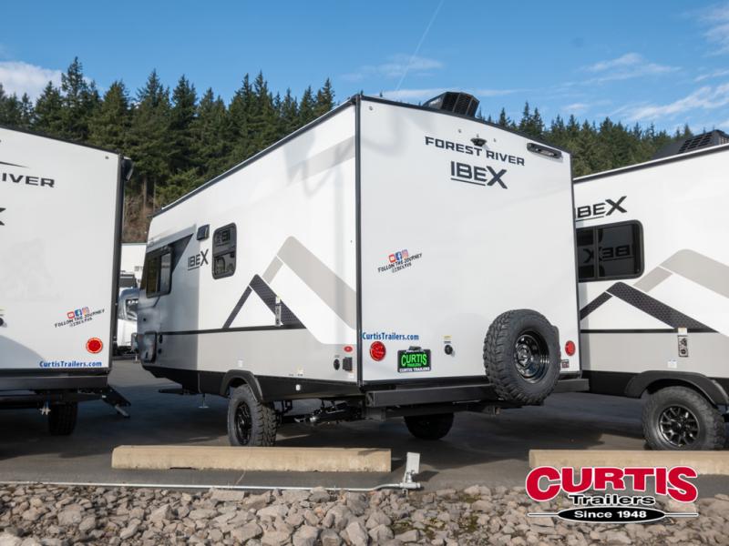 The Forest River IBEX travel trailers are extended season ready, and adventure approved! They are built with a sealed underbelly with forced heat and radiant foil barrier, along with an aluminum framed floor and 12V tank heaters. There are also all-terrain tires with TPMS, a 200-watt solar panel, a power tongue jack, and roof ladder prep. Inside, you'll love the Surf(X) seamless countertops and the large kitchen sink with a cup washer, plus there is Bluetooth audio with marine grade speakers so you can listen to your favorite tunes. The optional Black Canyon Beast Mode Package is available with an independent suspension, 400 watts of solar, a fresh water filter, and a Maxxair roof vent cover.