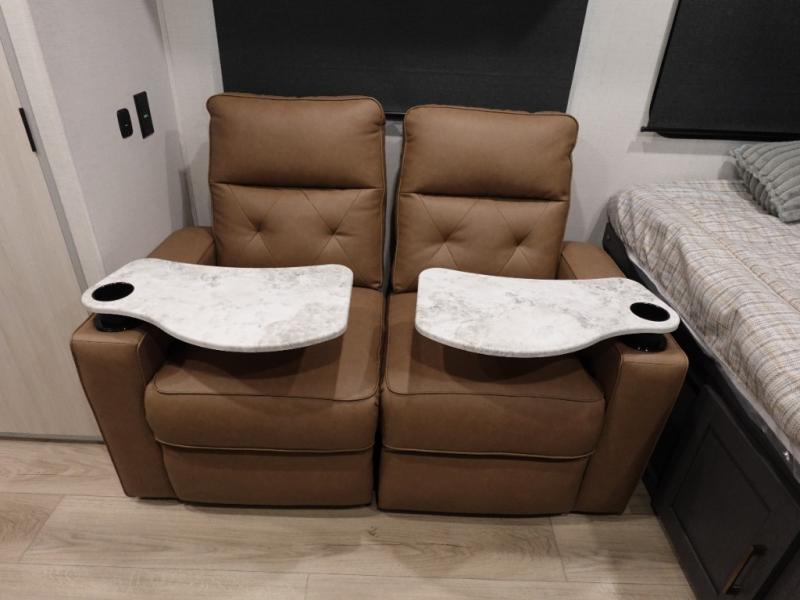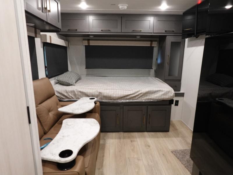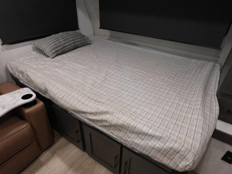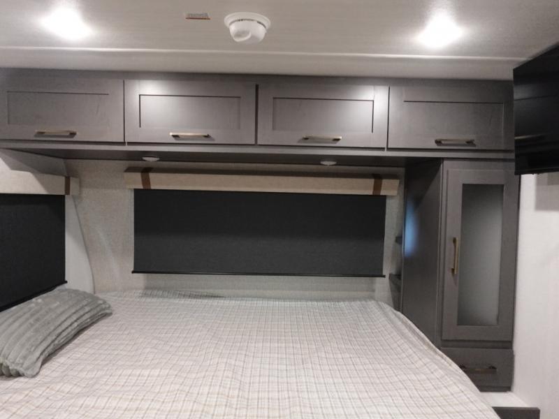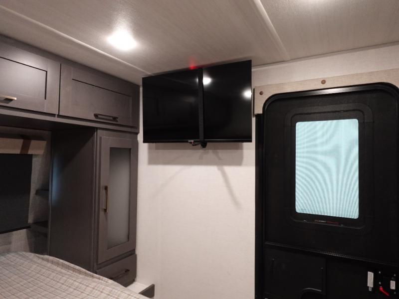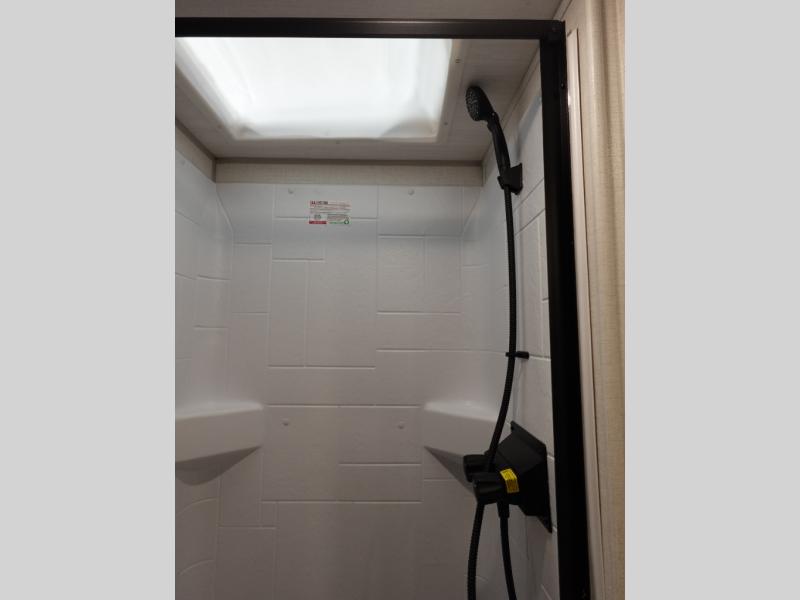 The Forest River IBEX travel trailers are extended season ready, and adventure approved! They are built with a fully walkable PVC roof, a welded aluminum structure, and laminated walls and slide outs with Azdel composite panels. There are also all-terrain tires with TPMS, a hot and cold exterior spray port, and large holding tanks for added convenience when you're set up off-grid. The USB-C ports inside and out will help you keep your electronics charged, and the premium window treatments will make your trailer feel more like home.