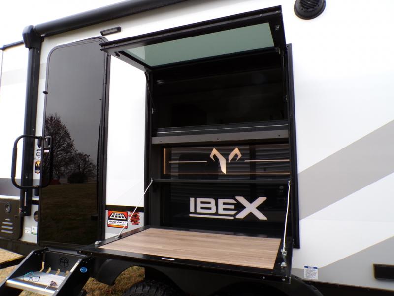 The Forest River IBEX travel trailers are extended season ready, and adventure approved! They are built with a fully walkable PVC roof, a welded aluminum structure, and laminated walls and slide outs with Azdel composite panels. There are also all-terrain tires with TPMS, a hot and cold exterior spray port, and large holding tanks for added convenience when you're set up off-grid. The USB-C ports inside and out will help you keep your electronics charged, and the premium window treatments will make your trailer feel more like home. The optional Black Canyon Beast Mode Package is available with an independent suspension, a 400-watt solar package, a fresh water filter, and a Maxxair roof vent cover.