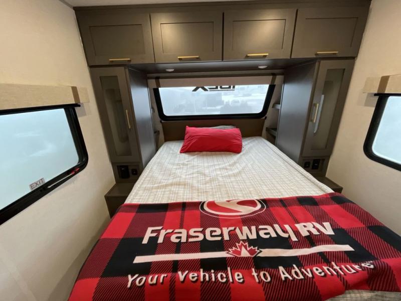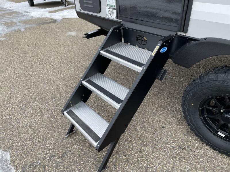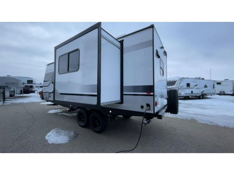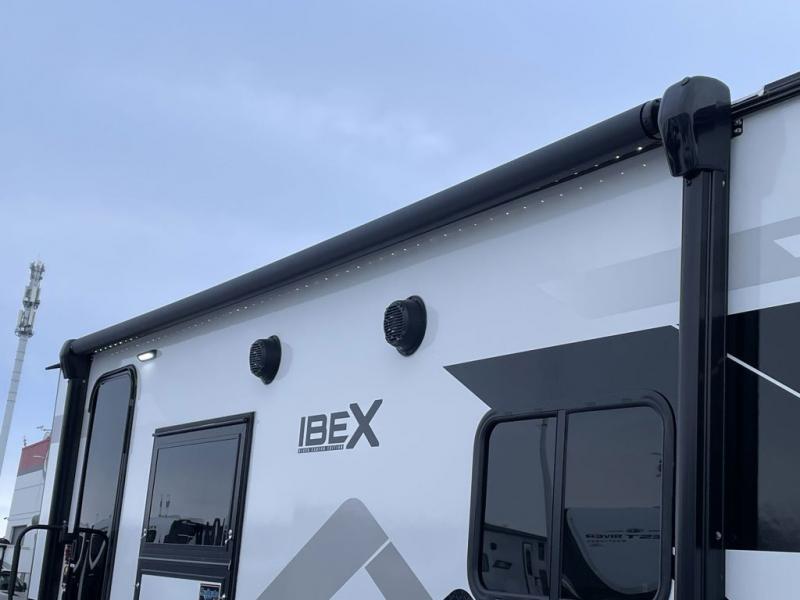 The Forest River IBEX travel trailers are extended season ready, and adventure approved! They are built with a fully walkable PVC roof, a welded aluminum structure, and laminated walls and slide outs with Azdel composite panels. There are also all-terrain tires with TPMS, a hot and cold exterior spray port, and large holding tanks for added convenience when you're set up off-grid. The USB-C ports inside and out will help you keep your electronics charged, and the premium window treatments will make your trailer feel more like home. The optional Black Canyon Beast Mode Package is available with an independent suspension, a 400-watt solar package, a fresh water filter, and a Maxxair roof vent cover.
