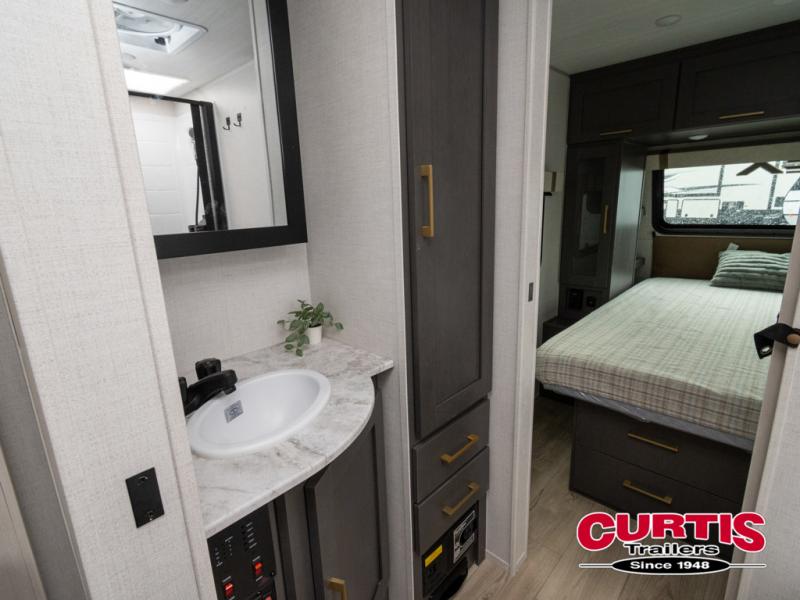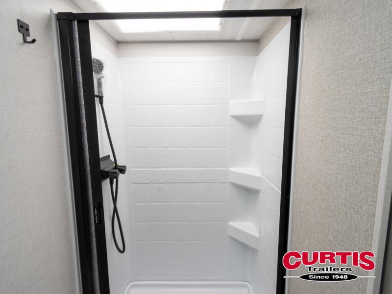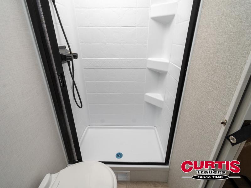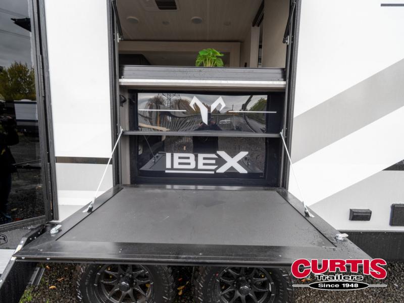 The Forest River IBEX travel trailers are extended season ready, and adventure approved! They are built with a fully walkable PVC roof, a welded aluminum structure, and laminated walls and slide outs with Azdel composite panels. There are also all-terrain tires with TPMS, a hot and cold exterior spray port, and large holding tanks for added convenience when you're set up off-grid. The USB-C ports inside and out will help you keep your electronics charged, and the premium window treatments will make your trailer feel more like home. The optional Black Canyon Beast Mode Package is available with an independent suspension, a 400-watt solar package, a fresh water filter, and a Maxxair roof vent cover.