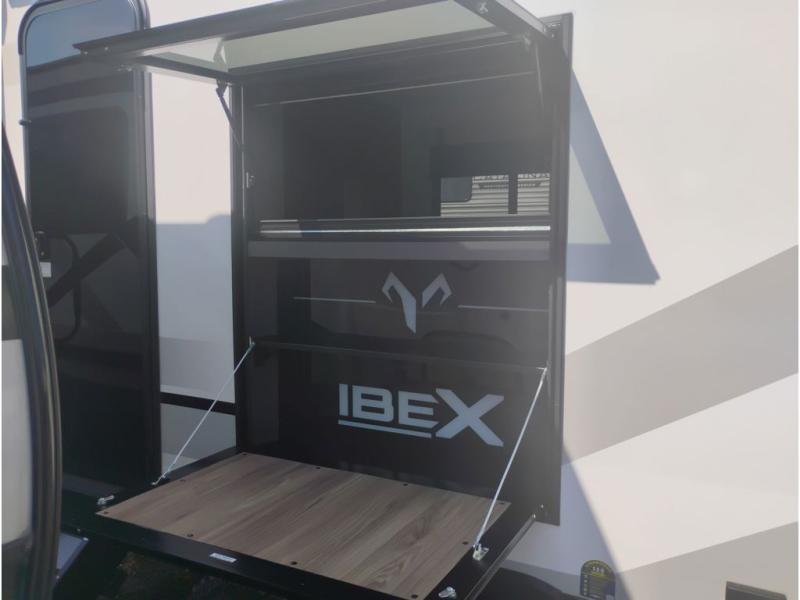 The Forest River IBEX travel trailers are extended season ready, and adventure approved! They are built with a sealed underbelly with forced heat and radiant foil barrier, along with an aluminum framed floor and 12V tank heaters. There are also all-terrain tires with TPMS, a 200-watt solar panel, a power tongue jack, and roof ladder prep. Inside, you'll love the Surf(X) seamless countertops and the large kitchen sink with a cup washer, plus there is Bluetooth audio with marine grade speakers so you can listen to your favorite tunes. The optional Black Canyon Beast Mode Package is available with an independent suspension, 400 watts of solar, a fresh water filter, and a Maxxair roof vent cover.