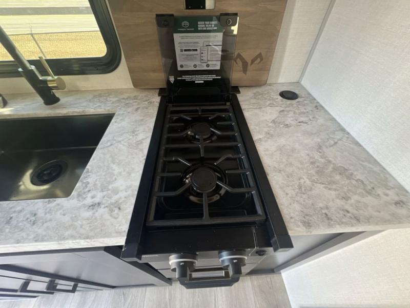 The Forest River IBEX travel trailers are extended season ready, and adventure approved! They are built with a sealed underbelly with forced heat and radiant foil barrier, along with an aluminum framed floor and 12V tank heaters. There are also all-terrain tires with TPMS, a 200-watt solar panel, a power tongue jack, and roof ladder prep. Inside, you'll love the Surf(X) seamless countertops and the large kitchen sink with a cup washer, plus there is Bluetooth audio with marine grade speakers so you can listen to your favorite tunes.