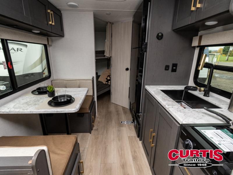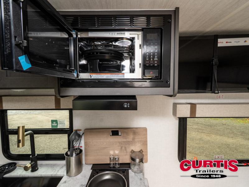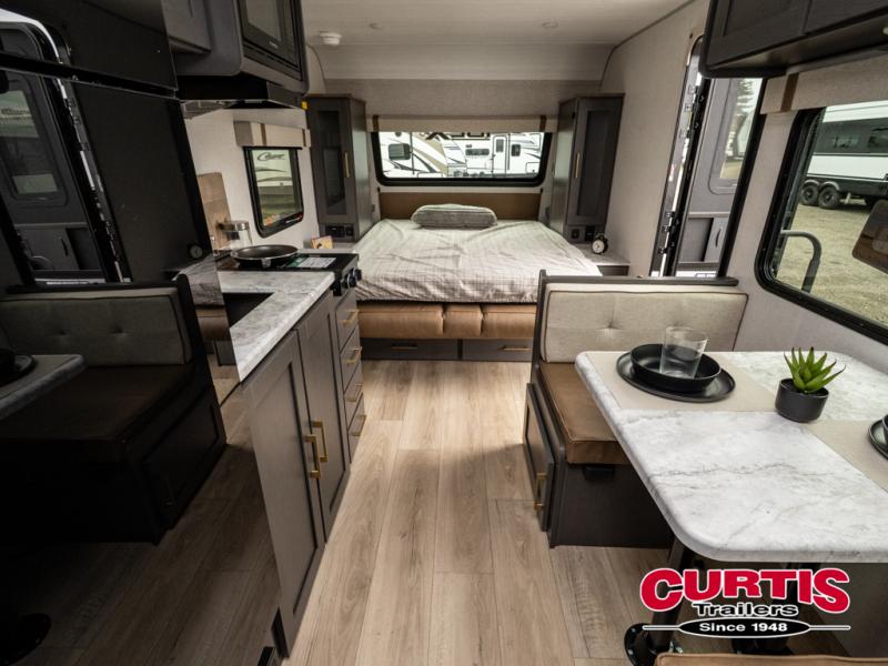 The Forest River IBEX travel trailers are extended season ready, and adventure approved! They are built with a fully walkable PVC roof, a welded aluminum structure, and laminated walls and slide outs with Azdel composite panels. There are also all-terrain tires with TPMS, a hot and cold exterior spray port, and large holding tanks for added convenience when you're set up off-grid. The USB-C ports inside and out will help you keep your electronics charged, and the premium window treatments will make your trailer feel more like home. The optional Black Canyon Beast Mode Package is available with an independent suspension, a 400-watt solar package, a fresh water filter, and a Maxxair roof vent cover.