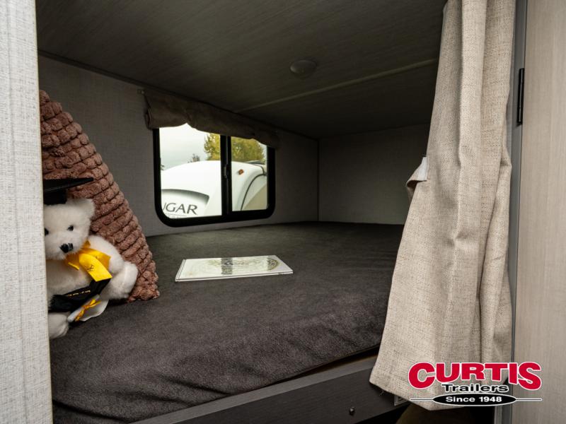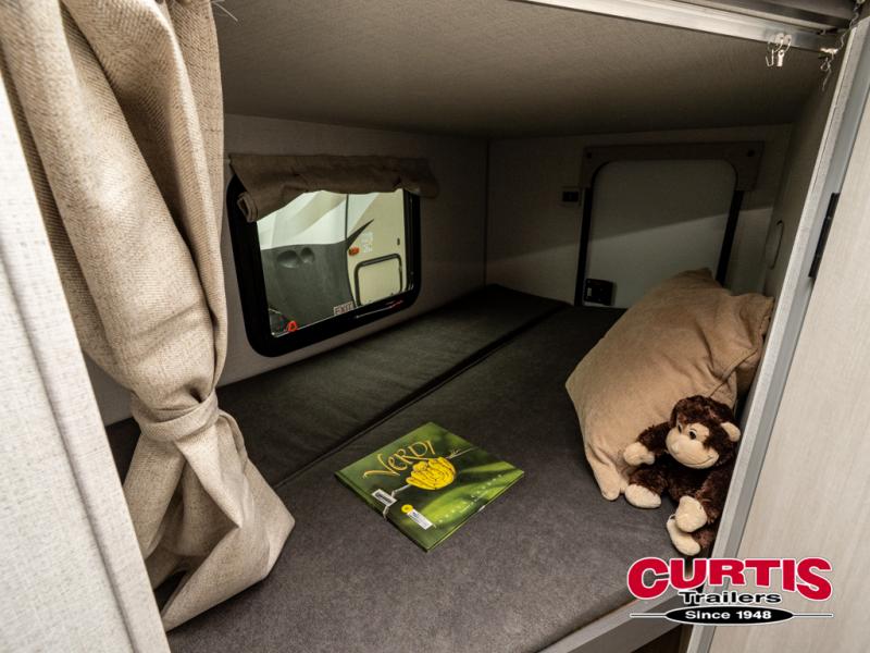 Start camping every chance you get with this easy-to-tow trailer! Once at camp, you can head out to explore to return to a versatile front area that offers a sofa during the daytime and a Murphy bed at night. There is a dinette for two to dine at as well as one to sleep on if needed, plus the galley kitchen provides the cook everything they need to feed one to several. There is a pantry for storage as well. The 44" x 74" double-size bunks will sleep two and maybe four kiddos, and the full bathroom will keep everyone refreshed. There is a pass-through compartment for the larger items like fishing poles and outdoor tables and a patio awning for some sun protection.
