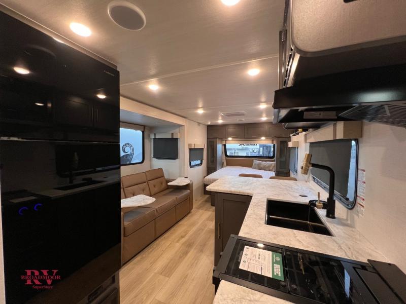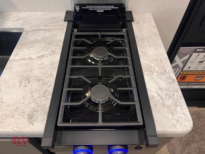 The Forest River IBEX travel trailers are extended season ready, and adventure approved! They are built with a fully walkable PVC roof, a welded aluminum structure, and laminated walls and slide outs with Azdel composite panels. There are also all-terrain tires with TPMS, a hot and cold exterior spray port, and large holding tanks for added convenience when you're set up off-grid. The USB-C ports inside and out will help you keep your electronics charged, and the premium window treatments will make your trailer feel more like home. The optional Black Canyon Beast Mode Package is available with an independent suspension, a 400-watt solar package, a fresh water filter, and a Maxxair roof vent cover.