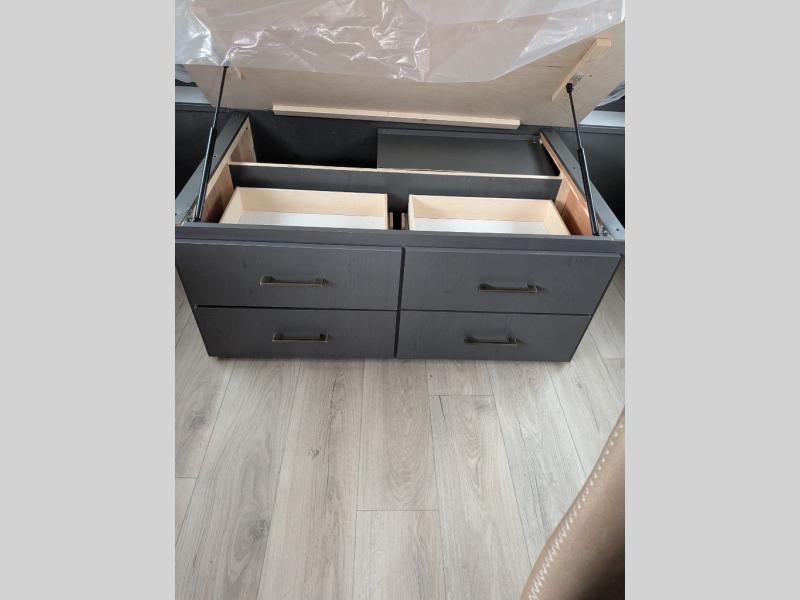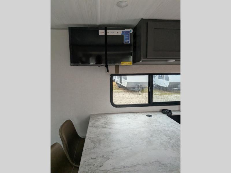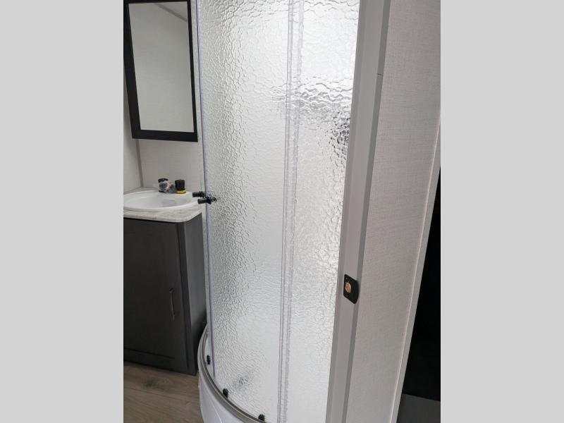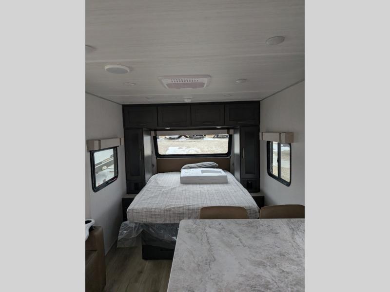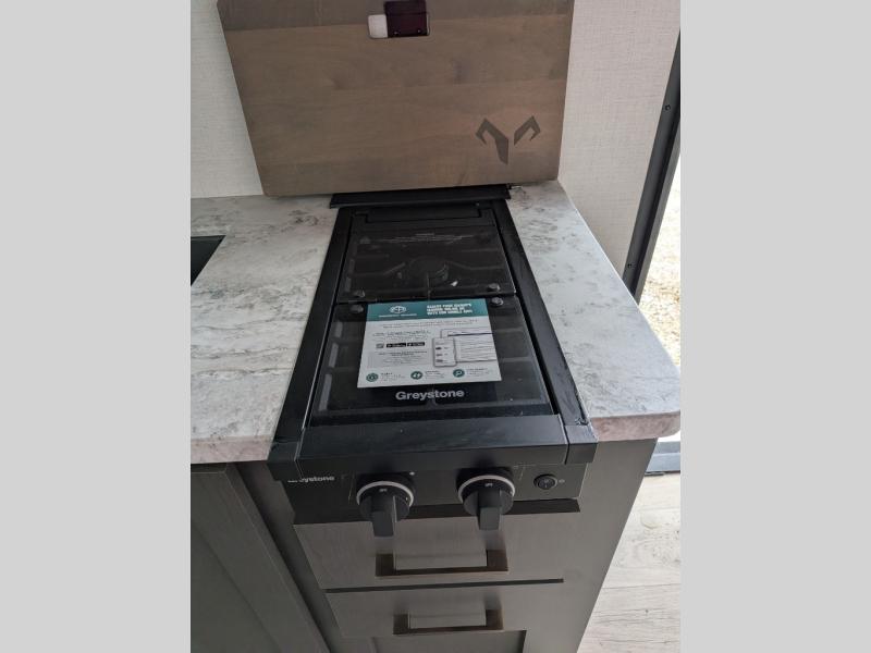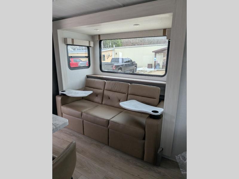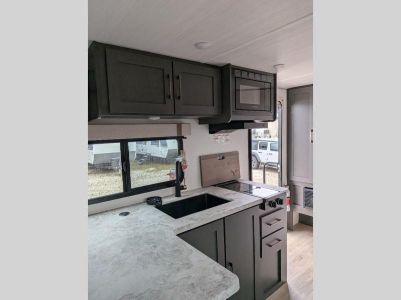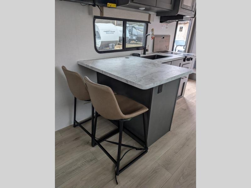 The Forest River IBEX travel trailers are extended season ready, and adventure approved! They are built with a sealed underbelly with forced heat and radiant foil barrier, along with an aluminum framed floor and 12V tank heaters. There are also all-terrain tires with TPMS, a 200-watt solar panel, a power tongue jack, and roof ladder prep. Inside, you'll love the Surf(X) seamless countertops and the large kitchen sink with a cup washer, plus there is Bluetooth audio with marine grade speakers so you can listen to your favorite tunes.