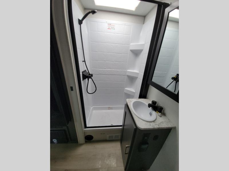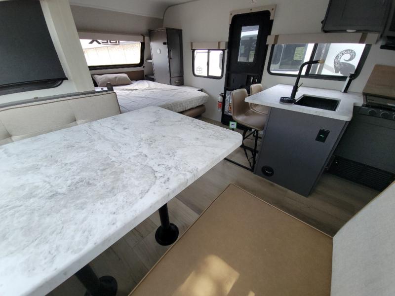 With any IBEX travel trailer or toy hauler by Forest River, you will find a fully enclosed underbelly with radiant foil for added insulation and a Cold Weather Package with 12V heated tank pads to help extend your camping season. There are also laminated walls with aluminum construction and Azdel composite substrate and a TPMS system with a wireless display so you can easily keep an eye on your tire pressure levels. The mandatory XLT Package also comes with a rugged tire and wheel package, solid surface entry steps, and a solar package with a 200W solar panel, 20A charge controller, and 2000W inverter prep. For those who wish to go further off-road, the optional Beast Mode Package can be added that features an independent suspension, 400 watts of solar power, and more!