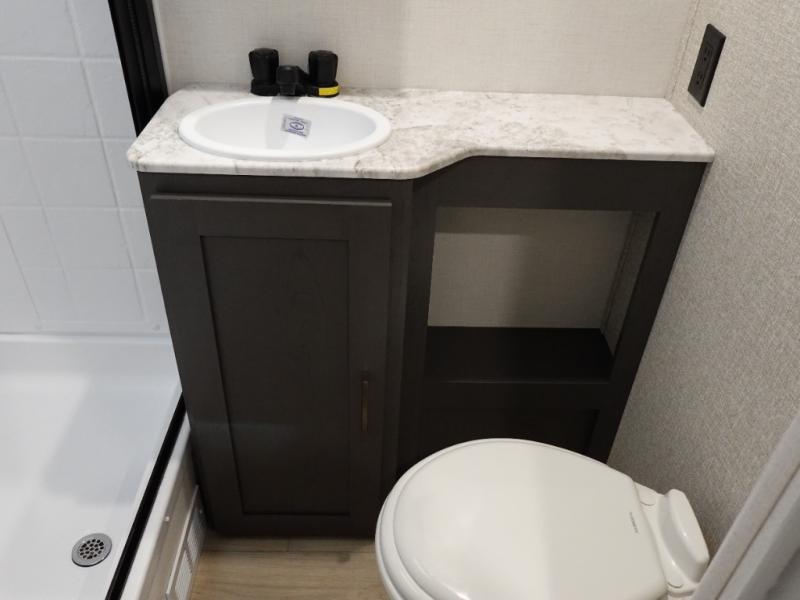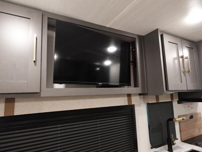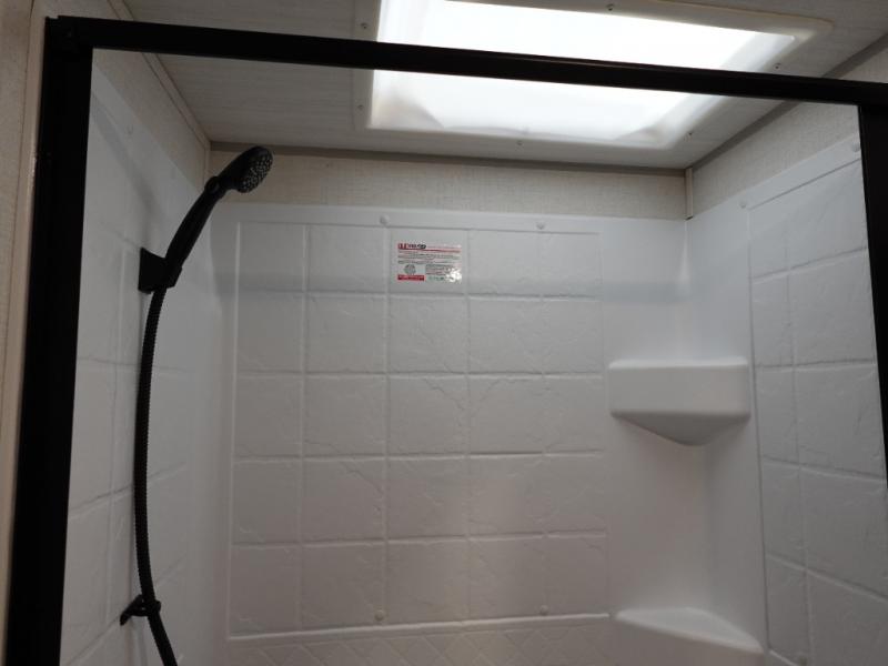 The Forest River IBEX travel trailers are extended season ready, and adventure approved! They are built with a fully walkable PVC roof, a welded aluminum structure, and laminated walls and slide outs with Azdel composite panels. There are also all-terrain tires with TPMS, a hot and cold exterior spray port, and large holding tanks for added convenience when you're set up off-grid. The USB-C ports inside and out will help you keep your electronics charged, and the premium window treatments will make your trailer feel more like home.