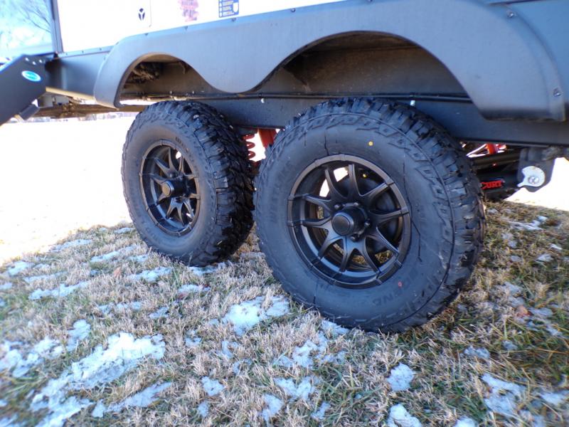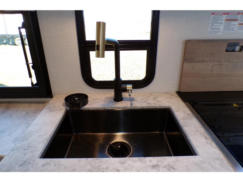 The Forest River IBEX travel trailers are extended season ready, and adventure approved! They are built with a fully walkable PVC roof, a welded aluminum structure, and laminated walls and slide outs with Azdel composite panels. There are also all-terrain tires with TPMS, a hot and cold exterior spray port, and large holding tanks for added convenience when you're set up off-grid. The USB-C ports inside and out will help you keep your electronics charged, and the premium window treatments will make your trailer feel more like home. The optional Black Canyon Beast Mode Package is available with an independent suspension, a 400-watt solar package, a fresh water filter, and a Maxxair roof vent cover.