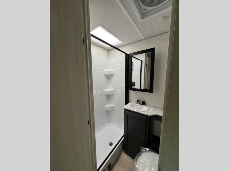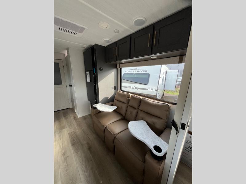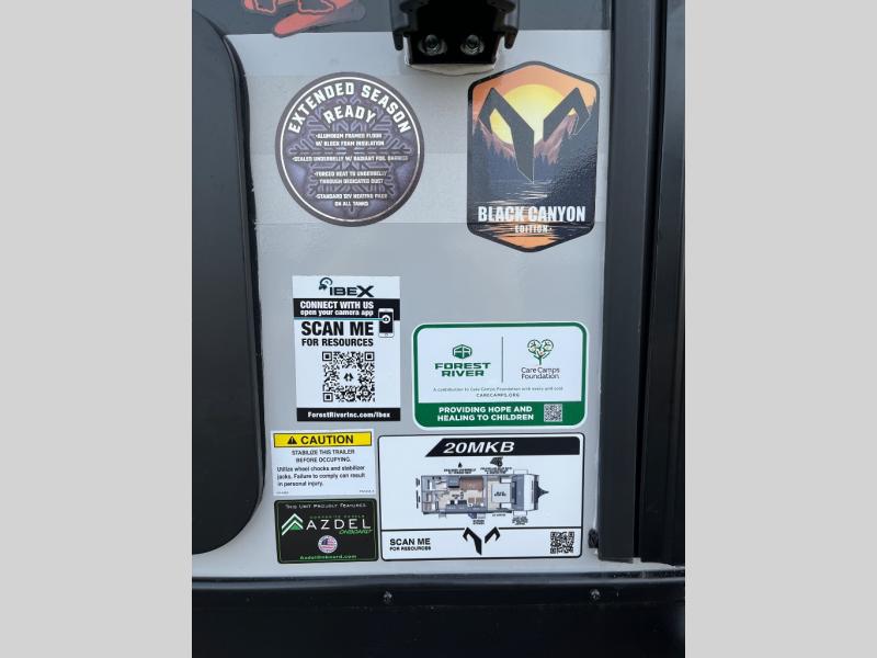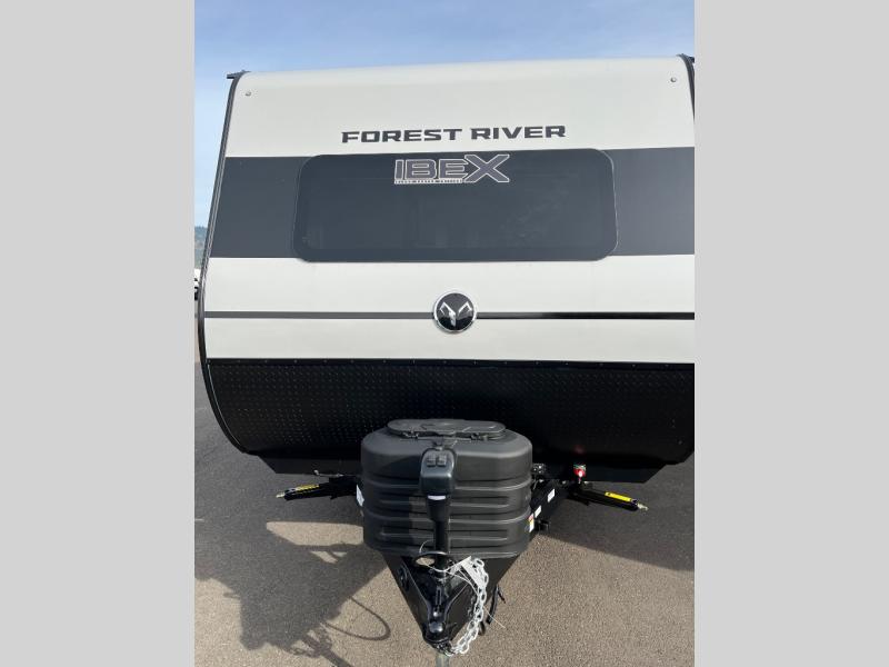 The Forest River IBEX travel trailers are extended season ready, and adventure approved! They are built with a fully walkable PVC roof, a welded aluminum structure, and laminated walls and slide outs with Azdel composite panels. There are also all-terrain tires with TPMS, a hot and cold exterior spray port, and large holding tanks for added convenience when you're set up off-grid. The USB-C ports inside and out will help you keep your electronics charged, and the premium window treatments will make your trailer feel more like home. The optional Black Canyon Beast Mode Package is available with an independent suspension, a 400-watt solar package, a fresh water filter, and a Maxxair roof vent cover.