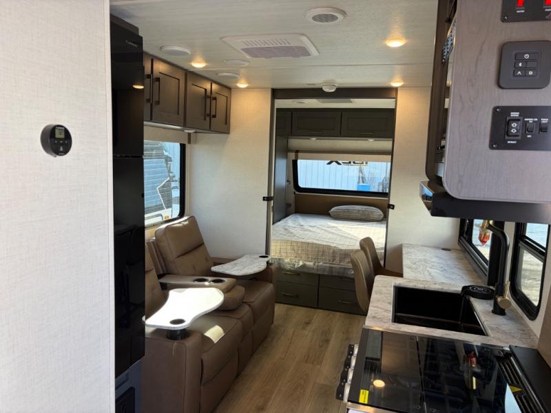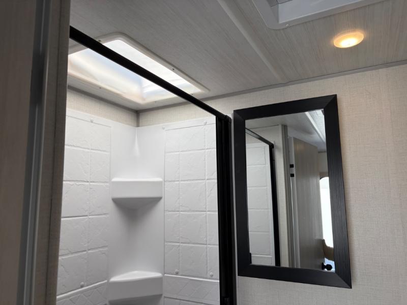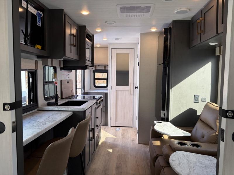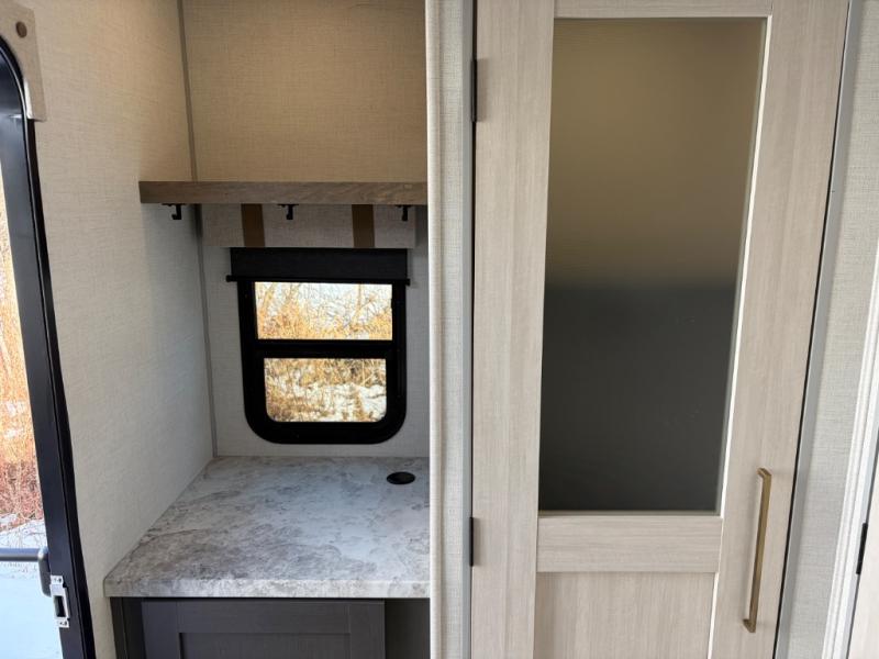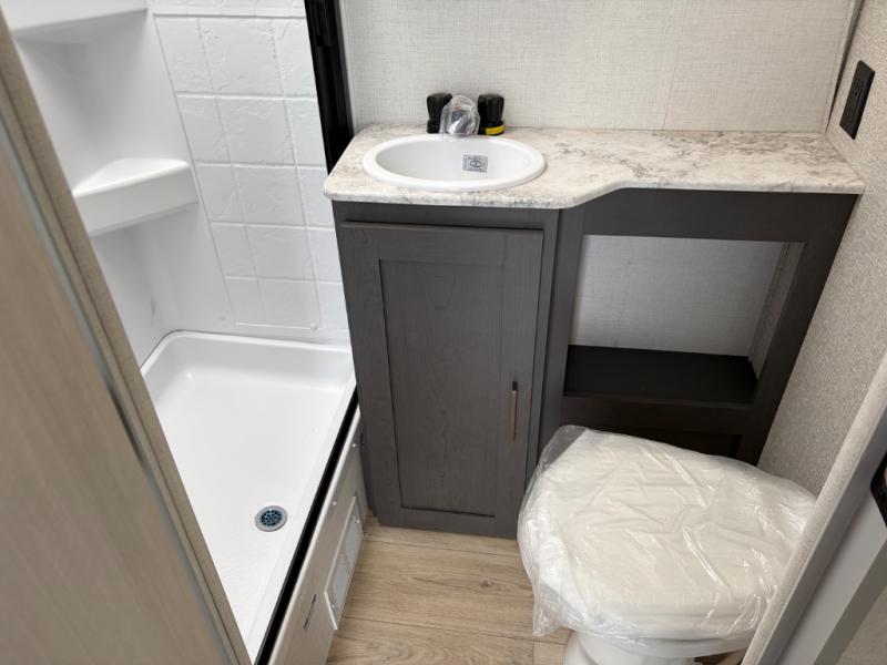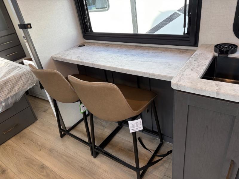 The Forest River IBEX travel trailers are extended season ready, and adventure approved! They are built with a sealed underbelly with forced heat and radiant foil barrier, along with an aluminum framed floor and 12V tank heaters. There are also all-terrain tires with TPMS, a 200-watt solar panel, a power tongue jack, and roof ladder prep. Inside, you'll love the Surf(X) seamless countertops and the large kitchen sink with a cup washer, plus there is Bluetooth audio with marine grade speakers so you can listen to your favorite tunes.