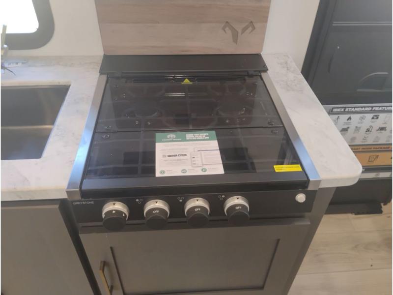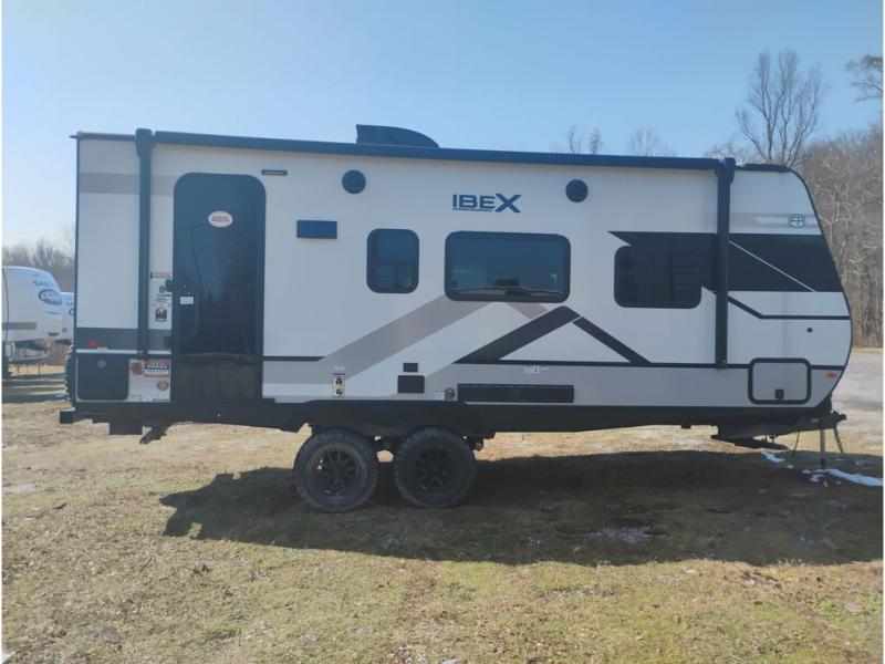 The Forest River IBEX travel trailers are extended season ready, and adventure approved! They are built with a sealed underbelly with forced heat and radiant foil barrier, along with an aluminum framed floor and 12V tank heaters. There are also all-terrain tires with TPMS, a 200-watt solar panel, a power tongue jack, and roof ladder prep. Inside, you'll love the Surf(X) seamless countertops and the large kitchen sink with a cup washer, plus there is Bluetooth audio with marine grade speakers so you can listen to your favorite tunes.