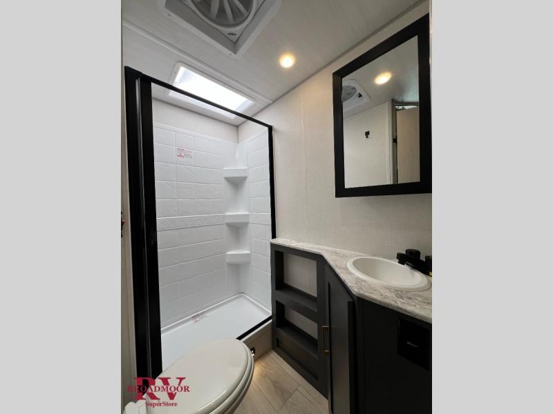 With any IBEX travel trailer or toy hauler by Forest River, you will find a fully enclosed underbelly with radiant foil for added insulation and a Cold Weather Package with 12V heated tank pads to help extend your camping season. There are also laminated walls with aluminum construction and Azdel composite substrate and a TPMS system with a wireless display so you can easily keep an eye on your tire pressure levels. The mandatory XLT Package also comes with a rugged tire and wheel package, solid surface entry steps, and a solar package with a 200W solar panel, 20A charge controller, and 2000W inverter prep.