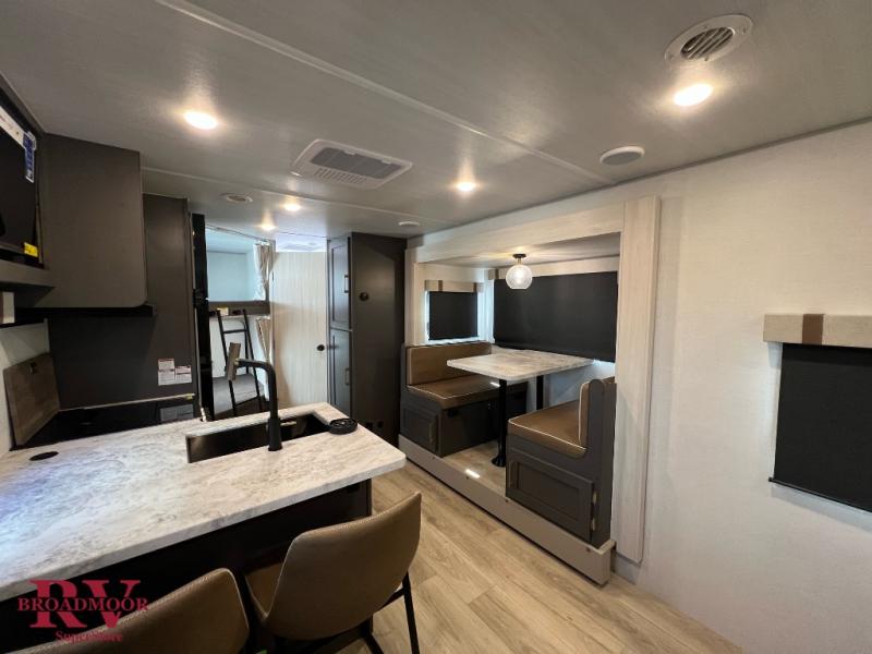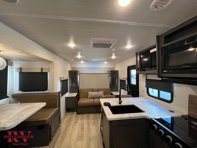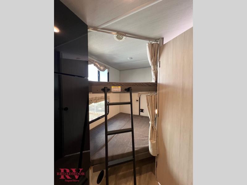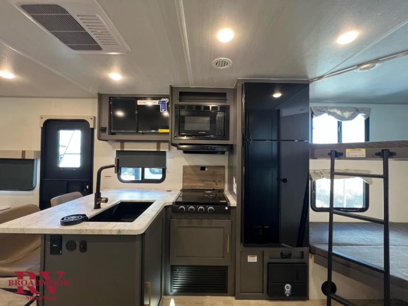 This Forest River IBEX travel trailer has a clever use of space that gives you a lot of options. The kitchen includes an all-in-one microwave and air fryer to cook meals plus a pantry and refrigerator for food storage. When it's time for bed, there's a 60" x 80" Murphy bed which will be super comfortable for a good night's sleep, and the little ones can claim the double-size bunks towards the back. A full bath onboard means you won't have to use the camp's facilities at night, and you'll find plenty of storage throughout this unit for all your gear! When the optional Beast Mode Package is chosen, you'll enjoy an independent suspension, 400 watts of solar power, a 30A charge controller, and a 2000W inverter.
