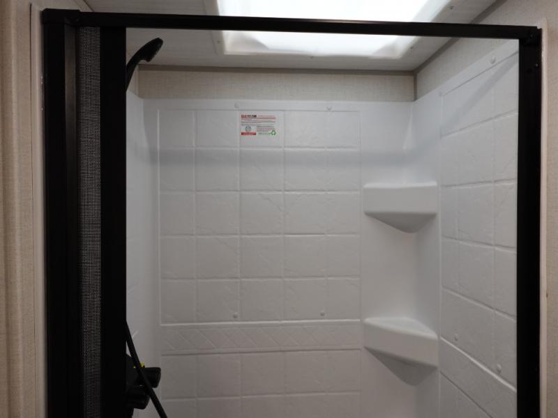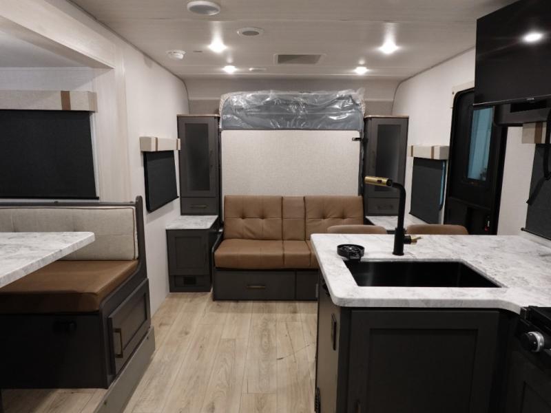 The Forest River IBEX travel trailers are extended season ready, and adventure approved! They are built with a fully walkable PVC roof, a welded aluminum structure, and laminated walls and slide outs with Azdel composite panels. There are also all-terrain tires with TPMS, a hot and cold exterior spray port, and large holding tanks for added convenience when you're set up off-grid. The USB-C ports inside and out will help you keep your electronics charged, and the premium window treatments will make your trailer feel more like home.
