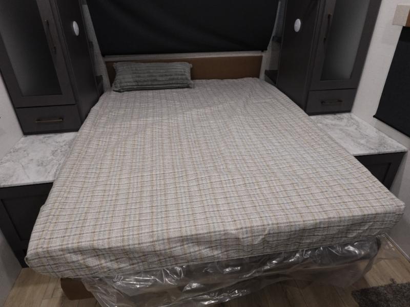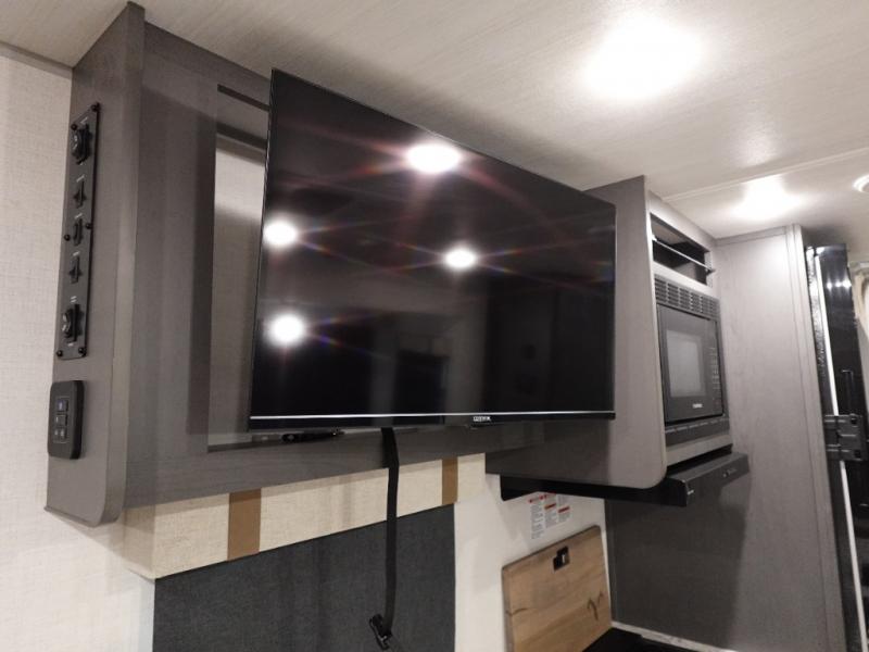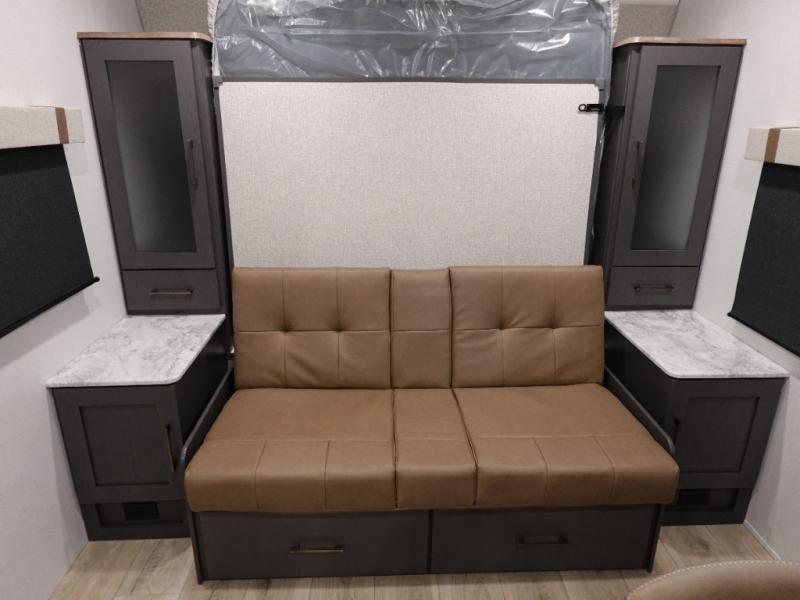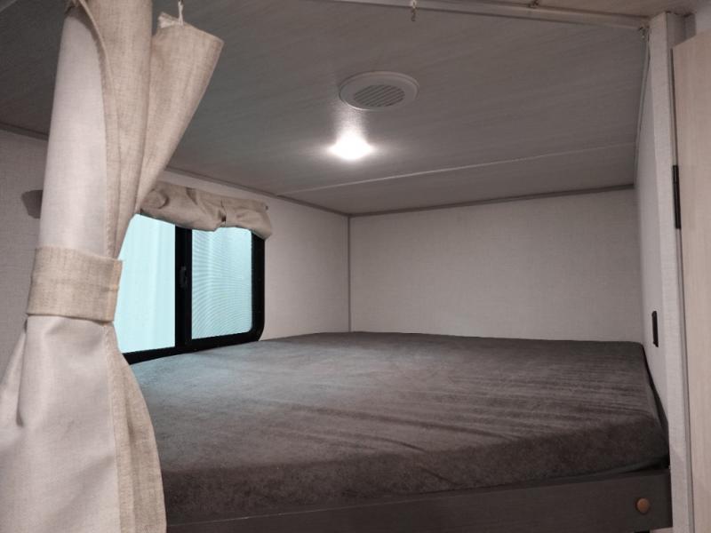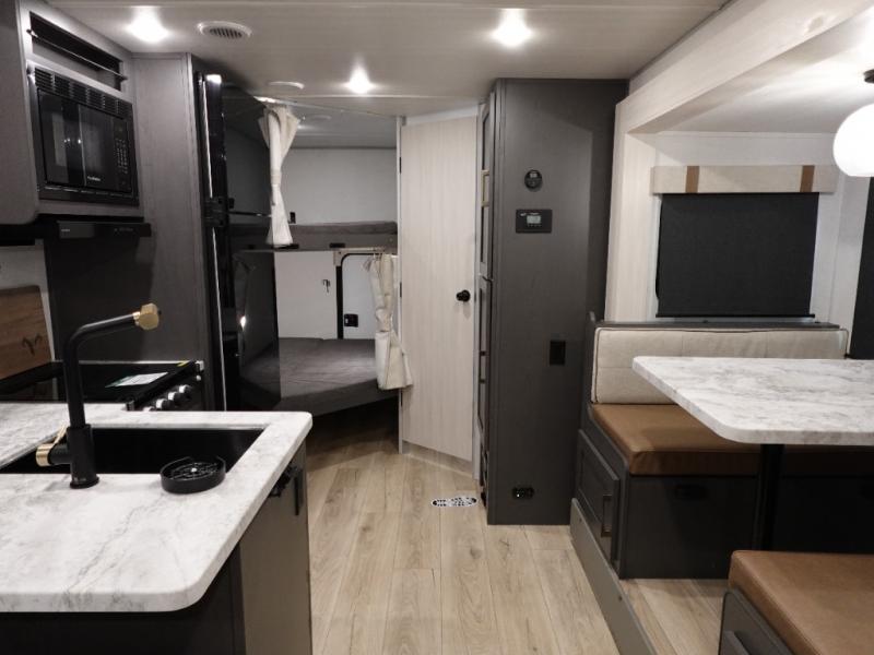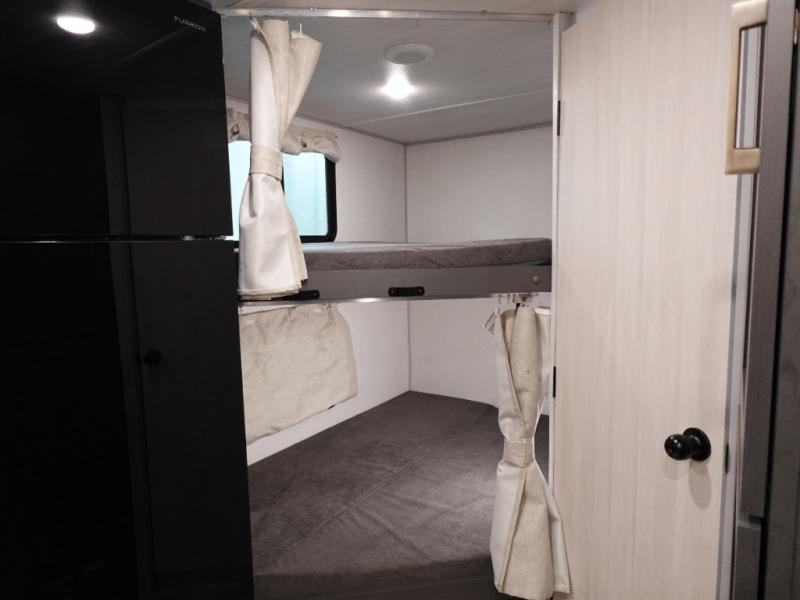 This Forest River IBEX travel trailer has a clever use of space that gives you a lot of options. The kitchen includes microwave air fryer to cook meals plus a pantry and refrigerator for food storage. When it's time for bed, there's a 60" x 80" Murphy bed which will be super comfortable for a good night's sleep, and the little ones can claim the double-size bunks towards the back. A full bath onboard means you won't have to use the camp's facilities at night, and you'll find plenty of storage throughout this unit for all your gear!