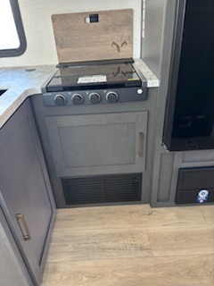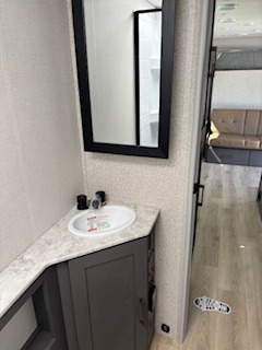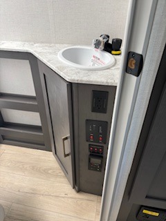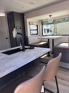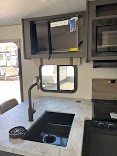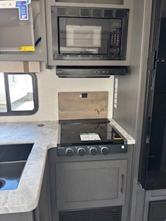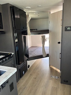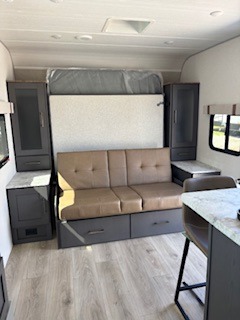 This Forest River IBEX travel trailer has a clever use of space that gives you a lot of options. The kitchen includes microwave air fryer to cook meals plus a pantry and refrigerator for food storage. When it's time for bed, there's a 60" x 80" Murphy bed which will be super comfortable for a good night's sleep, and the little ones can claim the double-size bunks towards the back. A full bath onboard means you won't have to use the camp's facilities at night, and you'll find plenty of storage throughout this unit for all your gear!