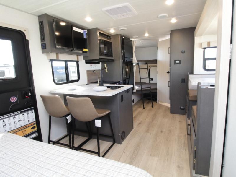 The 2026 Forest River IBEX 23MBH Beast Mode offers a spacious, slide-out booth dinette for extra room and bunk beds to comfortably accommodate family and friends on your next adventure!