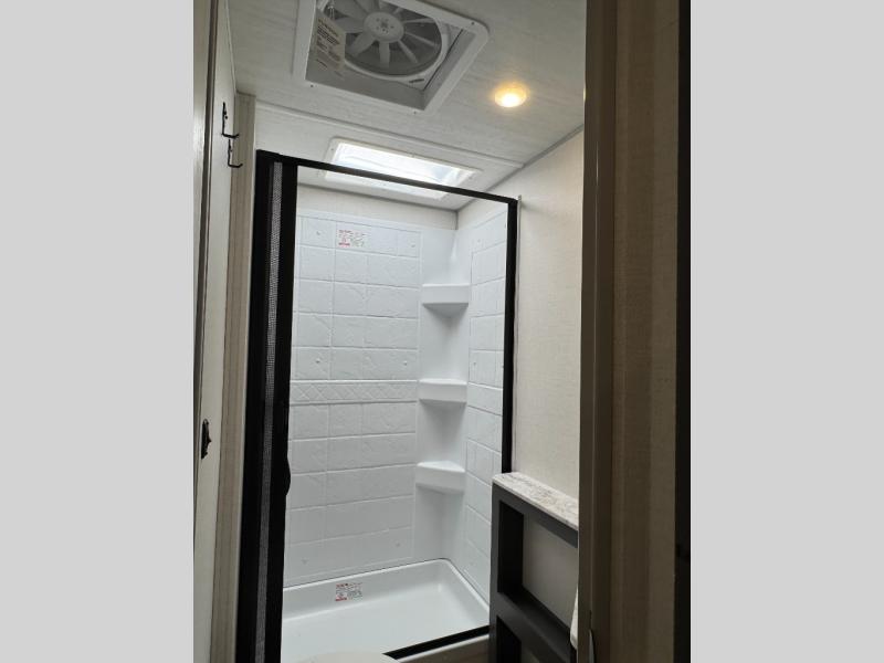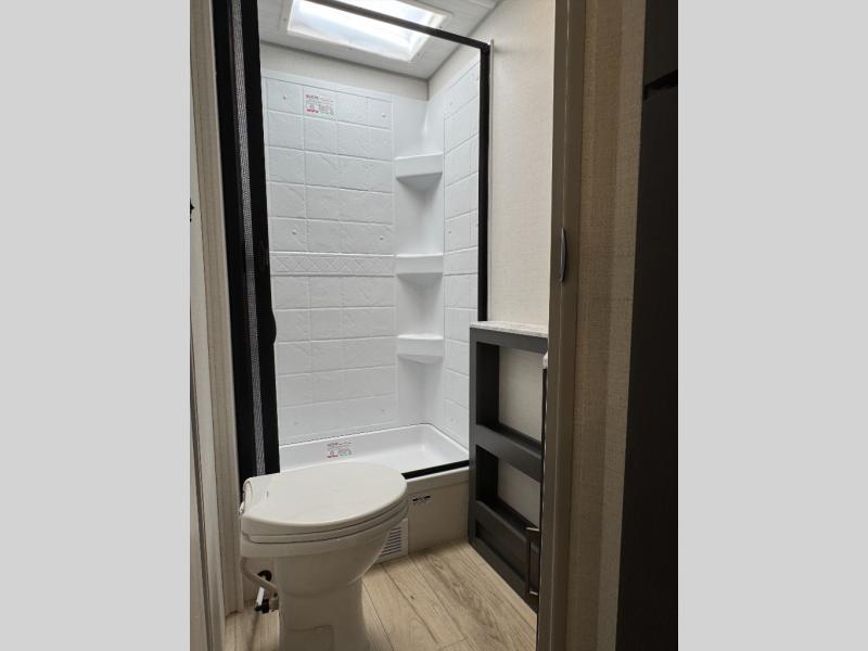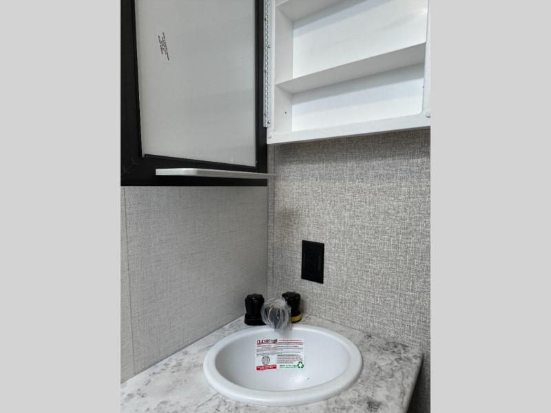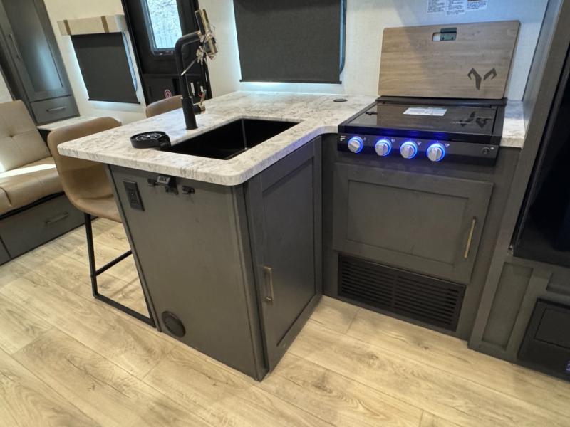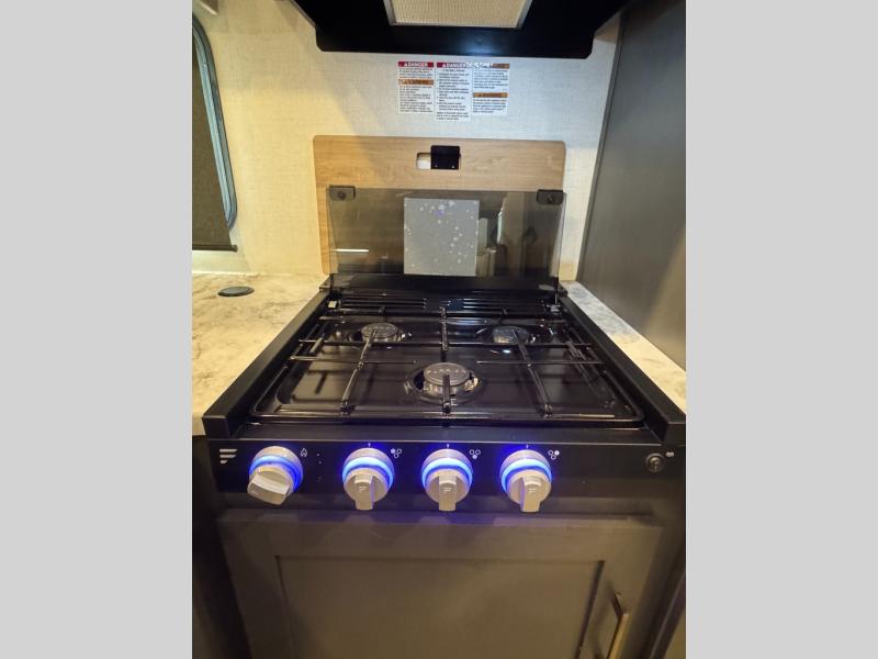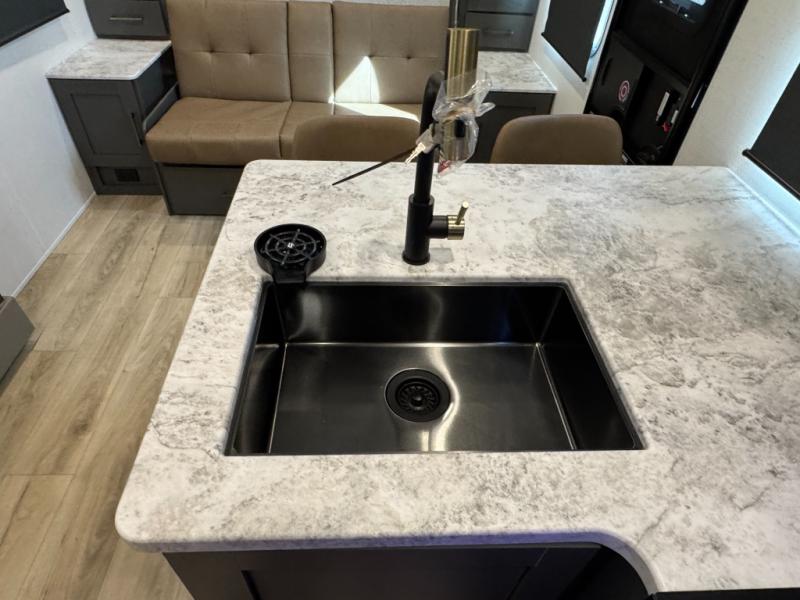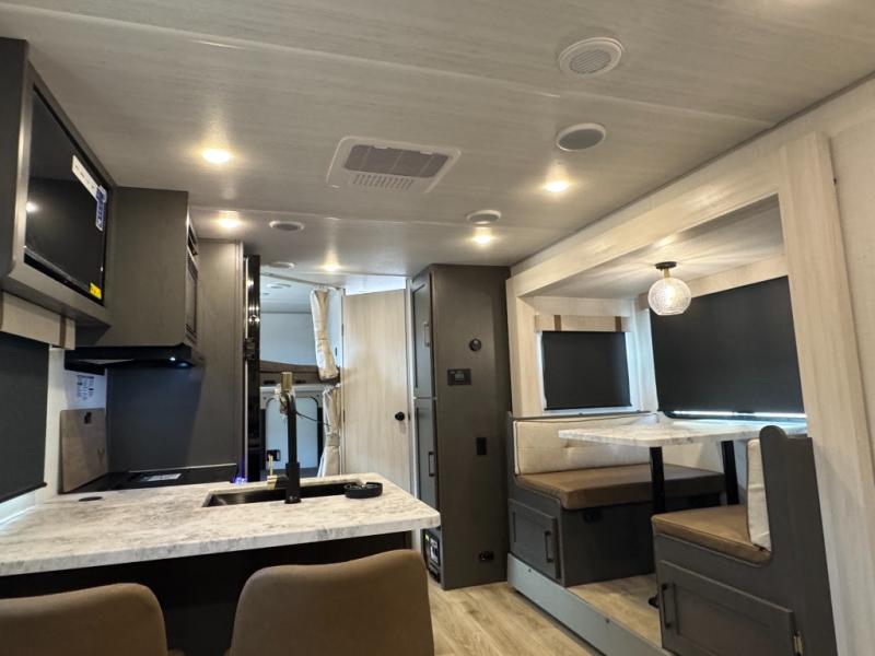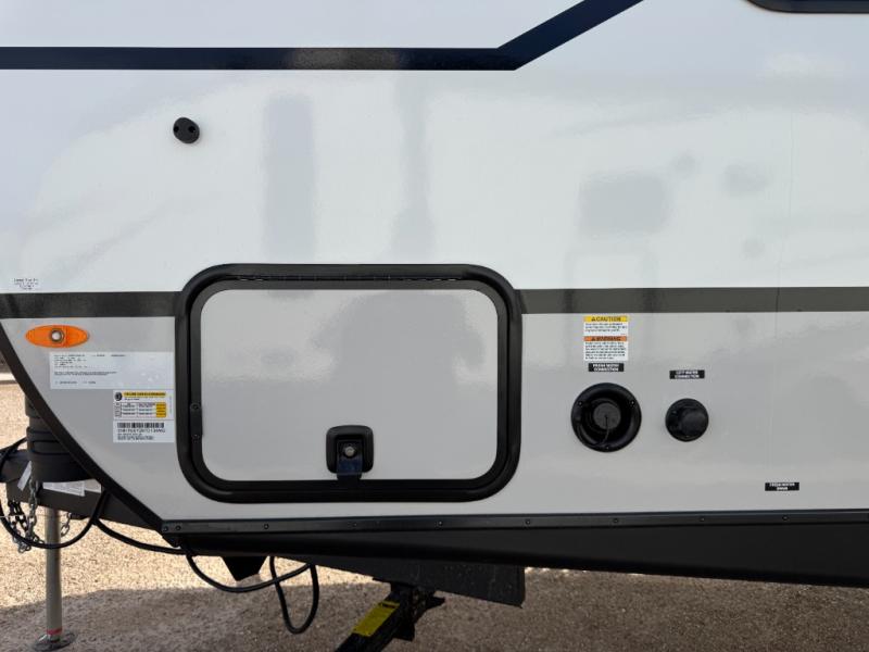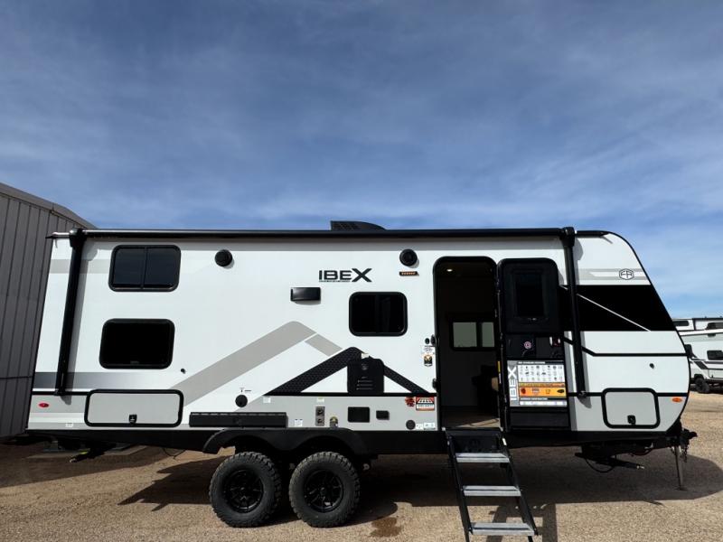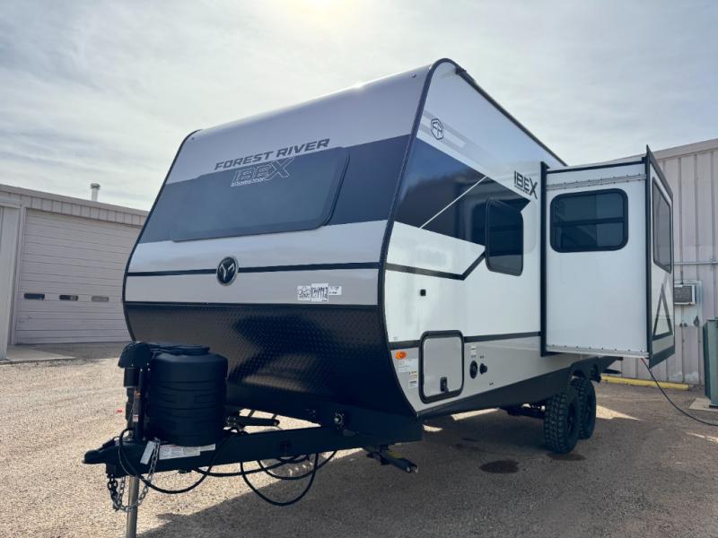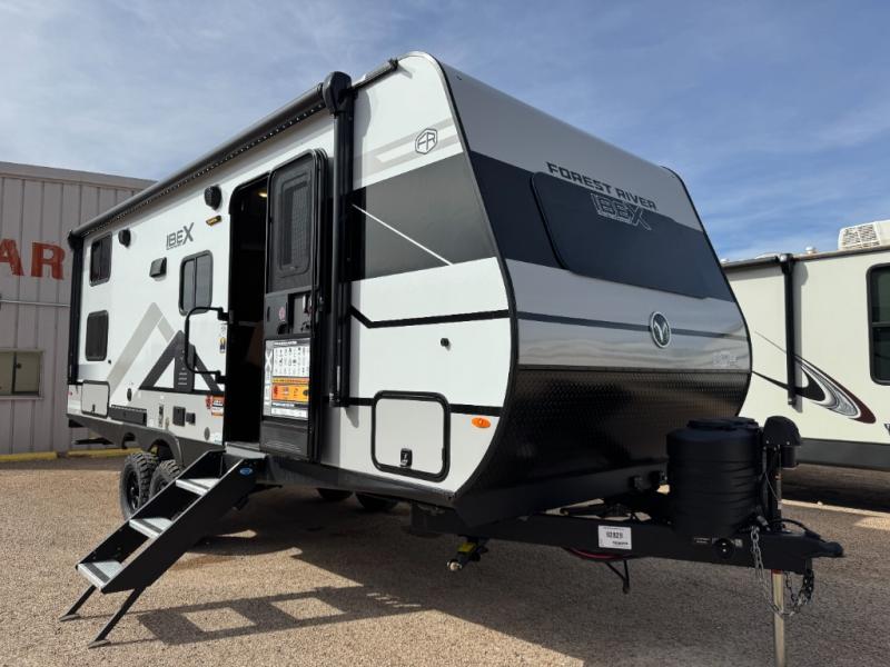The Forest River IBEX travel trailers are extended season ready, and adventure approved! They are built with a sealed underbelly with forced heat and radiant foil barrier, along with an aluminum framed floor and 12V tank heaters. There are also all-terrain tires with TPMS, a 200-watt solar panel, a power tongue jack, and roof ladder prep. Inside, you'll love the Surf(X) seamless countertops and the large kitchen sink with a cup washer, plus there is Bluetooth audio with marine grade speakers so you can listen to your favorite tunes.