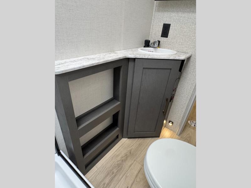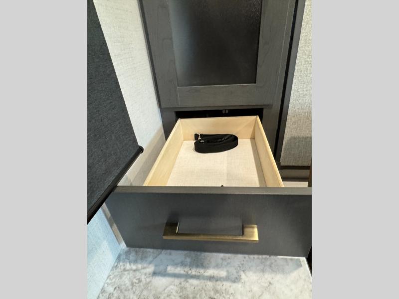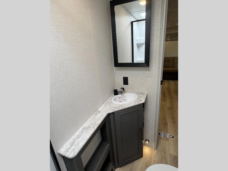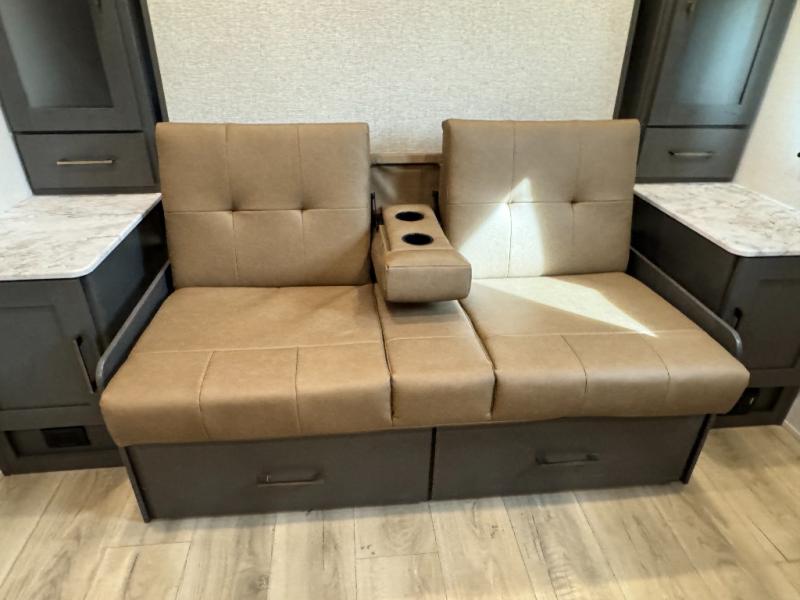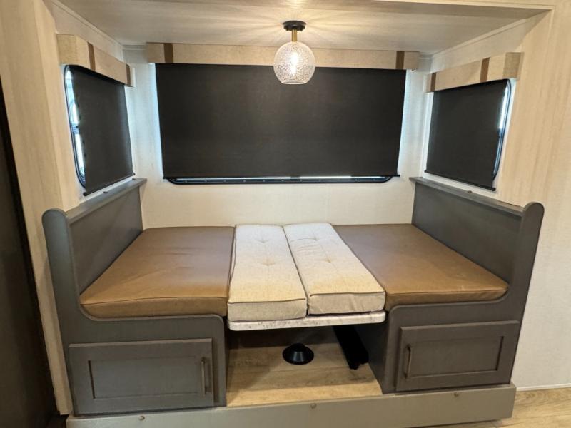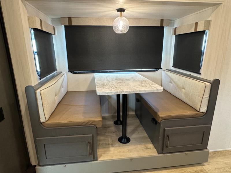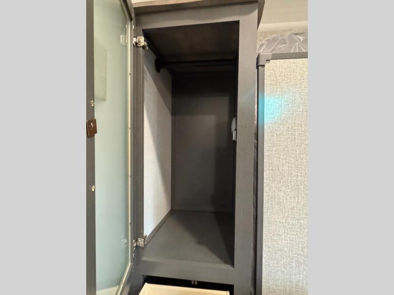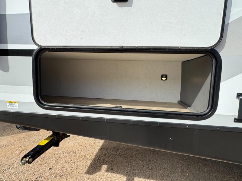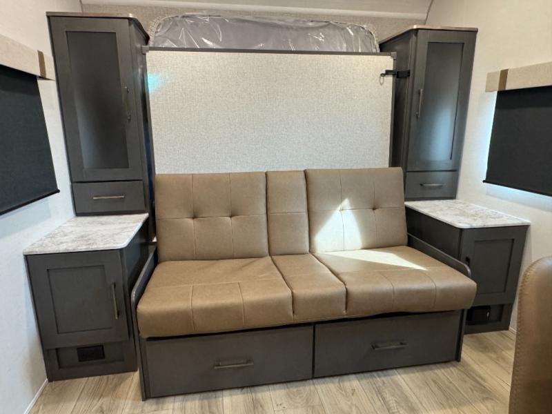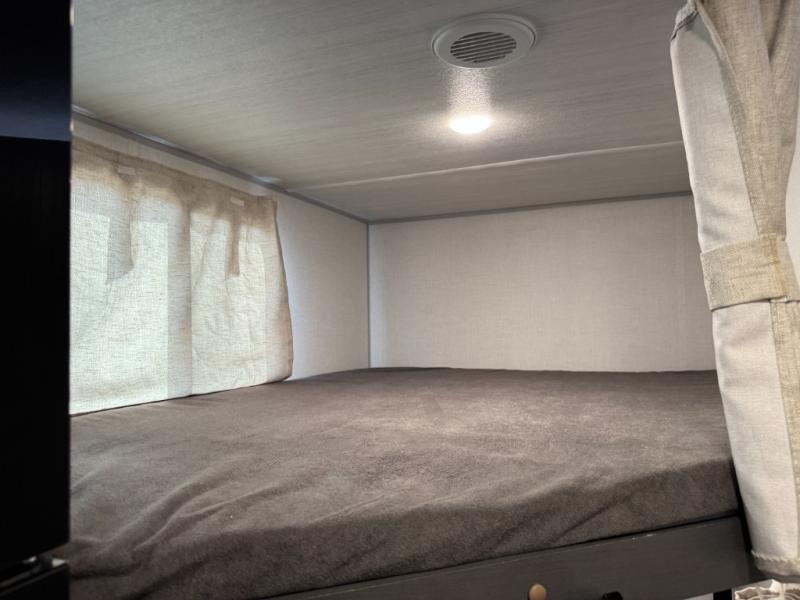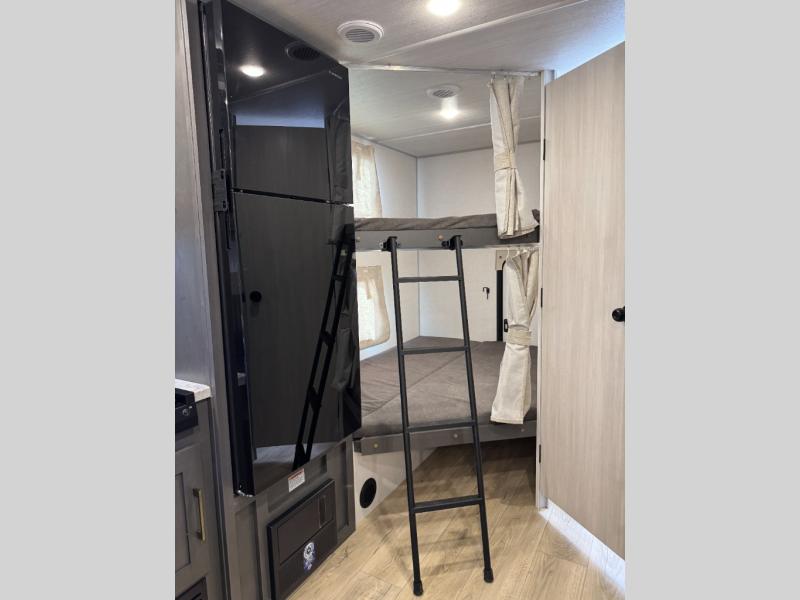 This travel trailer has a clever use of space that gives you a lot of options. The kitchen includes a microwave air fryer to cook meals plus a pantry and refrigerator for food storage. When it's time for bed, there's a 60" x 80" Murphy bed which will be super comfortable for a good night's sleep, and the little ones can claim the double-size bunks towards the back. A full bath onboard means you won't have to use the camp's facilities at night, and you'll find plenty of storage throughout this unit for all your gear! When the optional Black Canyon Beast Mode Package is chosen on this model, you'll find an independent suspension, an additional 200-watt solar panel, totaling 400 watts of solar, a 2000-watt inverter and more!