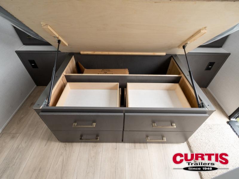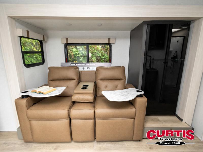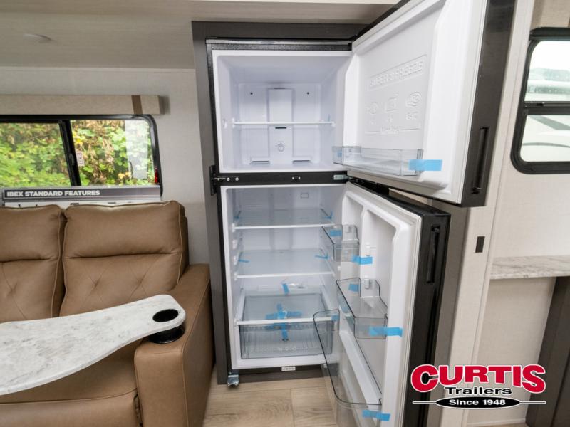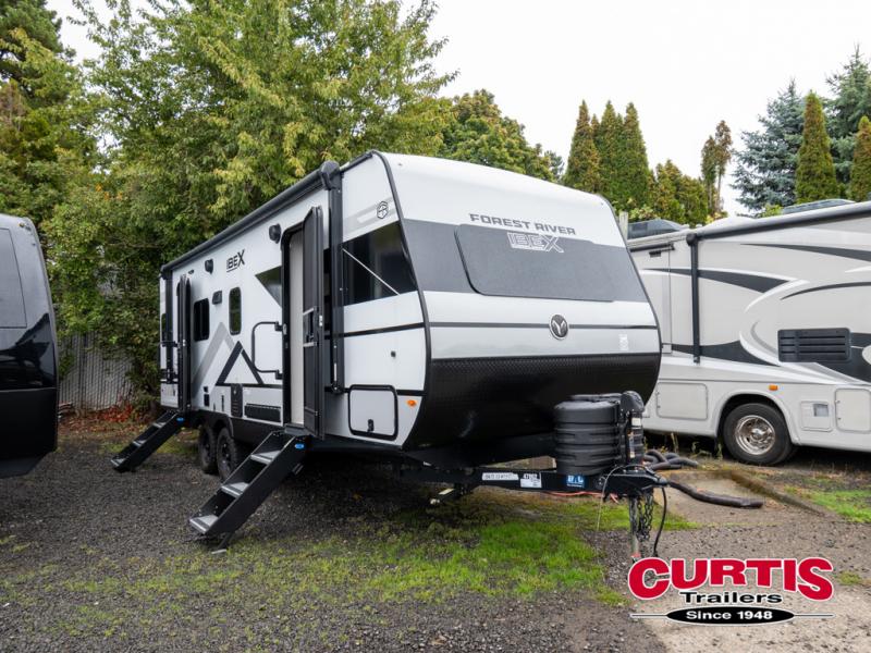 The Forest River IBEX travel trailers are extended season ready, and adventure approved! They are built with a fully walkable PVC roof, a welded aluminum structure, and laminated walls and slide outs with Azdel composite panels. There are also all-terrain tires with TPMS, a hot and cold exterior spray port, and large holding tanks for added convenience when you're set up off-grid. The USB-C ports inside and out will help you keep your electronics charged, and the premium window treatments will make your trailer feel more like home. The optional Black Canyon Beast Mode Package is available with an independent suspension, a 400-watt solar package, a fresh water filter, and a Maxxair roof vent cover.