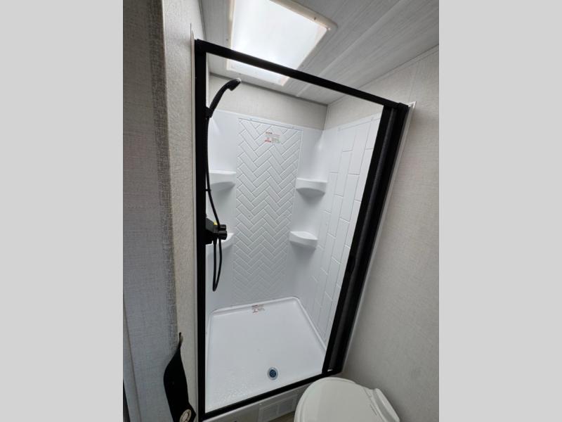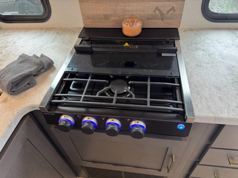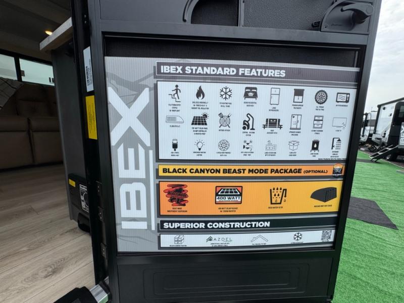 The Forest River IBEX travel trailers are extended season ready, and adventure approved! They are built with a fully walkable PVC roof, a welded aluminum structure, and laminated walls and slide outs with Azdel composite panels. There are also all-terrain tires with TPMS, a hot and cold exterior spray port, and large holding tanks for added convenience when you're set up off-grid. The USB-C ports inside and out will help you keep your electronics charged, and the premium window treatments will make your trailer feel more like home. This is equipped with the Black Canyon Beast Mode Package is available with an independent suspension, a 400-watt solar package, a fresh water filter, and a Maxxair roof vent cover.