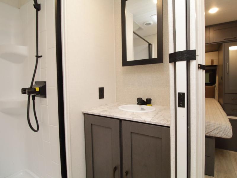 Step inside and experience a bright, open living space designed for comfort. The flip-up window in front of the dinette brings in scenic views and fresh air, making every morning feel like a retreat. Premium window treatments elevate the style while offering privacy when you need it. USB-C ports inside and out keep devices powered whether you’re streaming a movie or navigating your next destination.