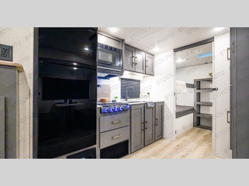 This layout is all about giving everyone their own space while keeping the coach easy to move around in. In the back, a rear bunkroom with 30" x 74" bunks creates a cozy spot for kids or guests to call their own, while the booth dinette in the main living area doubles as a place to eat, play games, or work on the road. The kitchen includes a pantry so you can actually stock real groceries instead of just weekend snacks, and the walkthrough bath connects everything together smoothly as you head up front. At the end of the day, you can slip straight through the bath into the queen bed, giving you a comfortable, private place to recharge without cutting through the whole coach.