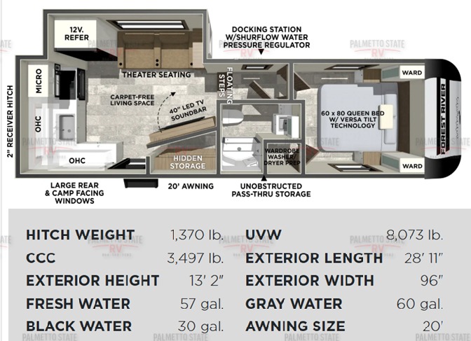 | Awning Info | 20' Adjustable Power with LED Lights |