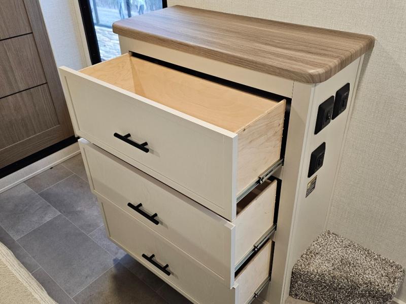 The 301ML combines a residential feel with smart functional design, offering a spacious rear kitchen, carpet-free living area, and abundant storage throughout. With high-end construction features like a heated and enclosed underbelly, upgraded climate control, and off-grid readiness, this fifth wheel is built to keep you comfortable in any season. Whether you’re relaxing under dual awnings or enjoying the roomy interior, the Impression 301ML delivers exceptional value and comfort for every adventure.