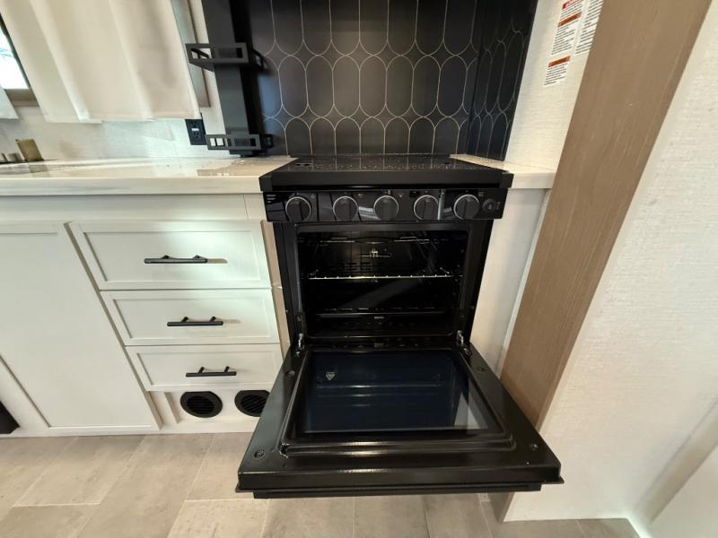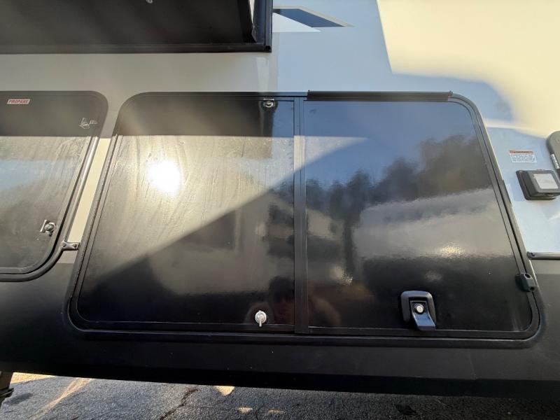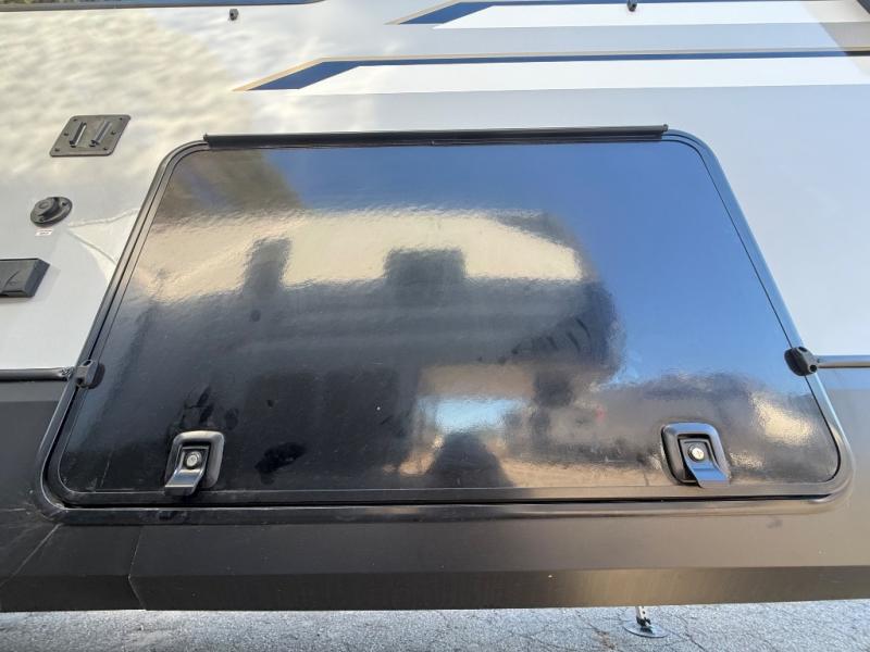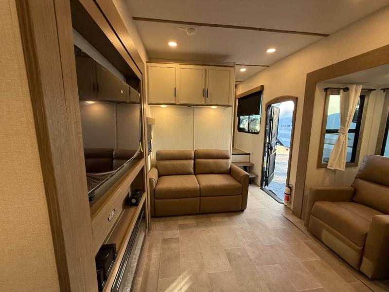 With any Impression fifth wheel by Forest River, the focus of the design is comfort and value, built with quality craftsmanship and attention to customer's desires in each Impression! The exterior includes upgraded E-rated tires, custom exterior graphics package, and insulated slam latch baggage doors. There is also an enclosed docking station, an outside shower, and a 100W roof panel for off-grid capabilities. The fully heated and enclosed AccessiBelly has removable underbelly panels along with enclosed tank valves. There is an industry leading 15K A/C plus 35K BTU furnace to keep you comfortable. The interior has lumbercore cabinetry, residential linoleum, residential backsplash in the kitchen, and oversized opening windows in the living area for more natural lighting and good air flow.