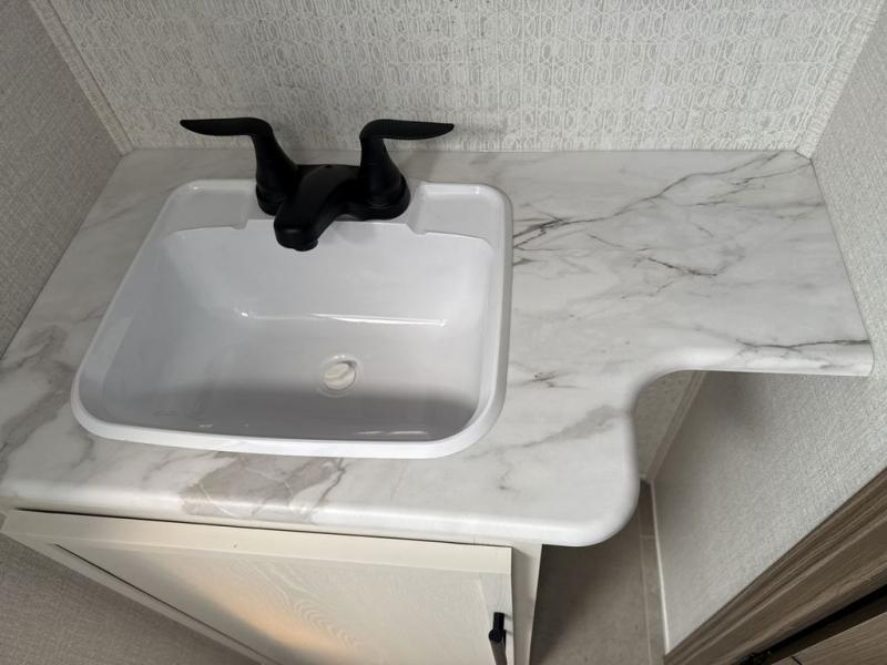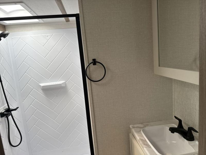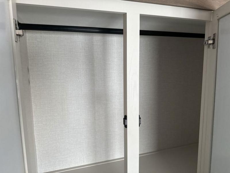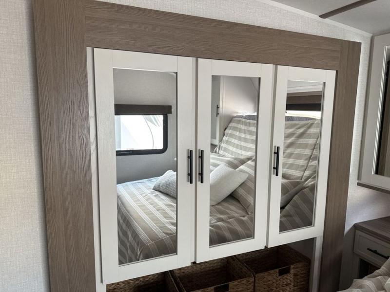 With any Impression mid-profile fifth wheel by Forest River, the focus of the design is comfort and value, built with quality craftsmanship and attention to customer's desires in each Impression! The exterior includes upgraded E-rated tires, custom exterior graphics package, and insulated slam latch baggage doors. There is also an enclosed docking station, an outside shower, and a 100W roof solar panel for off-grid capabilities. The fully heated and enclosed AccessiBelly has removable underbelly panels and offers four seasons of travel, and there is an industry leading 15K A/C plus 35K BTU furnace to keep you comfortable. The interior has lumbercore cabinetry, residential linoleum, residential backsplash in the kitchen, and oversized opening windows in the living area for more natural lighting and good air flow.