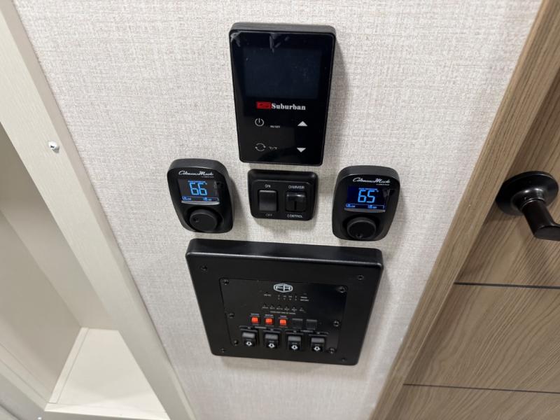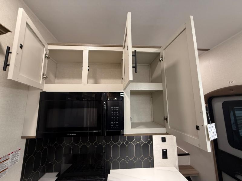 With any Impression fifth wheel by Forest River, the focus of the design is comfort and value, built with quality craftsmanship and attention to customer's desires in each Impression! The exterior includes upgraded E-rated tires, custom exterior graphics package, and insulated slam latch baggage doors. There is also an enclosed docking station, an outside shower, and a 100W roof panel for off-grid capabilities. The fully heated and enclosed AccessiBelly has removable underbelly panels along with enclosed tank valves. There is an industry leading 15K A/C plus 35K BTU furnace to keep you comfortable. The interior has lumbercore cabinetry, residential linoleum, residential backsplash in the kitchen, and oversized opening windows in the living area for more natural lighting and good air flow.