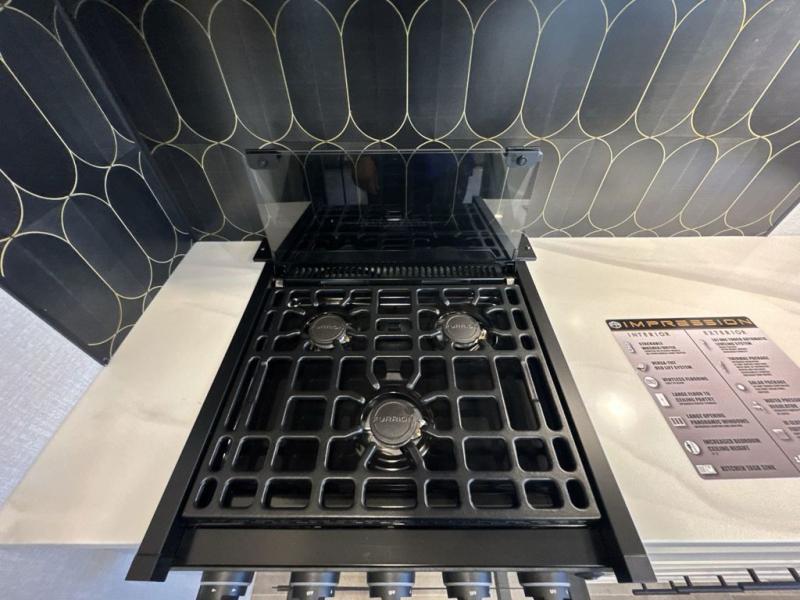 With any Impression mid-profile fifth wheel by Forest River, the focus of the design is comfort and value, built with quality craftsmanship and attention to customer's desires in each Impression! The exterior includes upgraded E-rated tires, custom exterior graphics package, and insulated slam latch baggage doors. There is also an enclosed docking station, an outside shower, and a 100W roof solar panel for off-grid capabilities. The fully heated and enclosed AccessiBelly has removable underbelly panels and offers four seasons of travel, and there is an industry leading 15K A/C plus 35K BTU furnace to keep you comfortable. The interior has lumbercore cabinetry, residential linoleum, residential backsplash in the kitchen, and oversized opening windows in the living area for more natural lighting and good air flow.