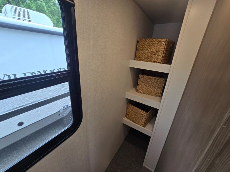 With any Impression mid-profile fifth wheel by Forest River, the focus of the design is comfort and value, built with quality craftsmanship and attention to customer's desires in each Impression! The exterior includes upgraded E-rated tires, custom exterior graphics package, and insulated slam latch baggage doors. There is also an enclosed docking station, an outside shower, and a 100W roof solar panel for off-grid capabilities. The fully heated and enclosed AccessiBelly has removable underbelly panels and offers four seasons of travel, and there is an industry leading 15K A/C plus 35K BTU furnace to keep you comfortable. The interior has lumbercore cabinetry, residential linoleum, residential backsplash in the kitchen, and oversized opening windows in the living area for more natural lighting and good air flow.