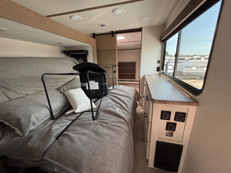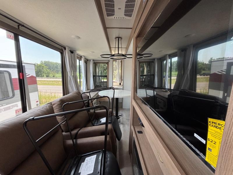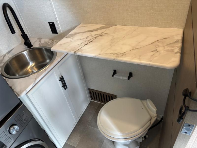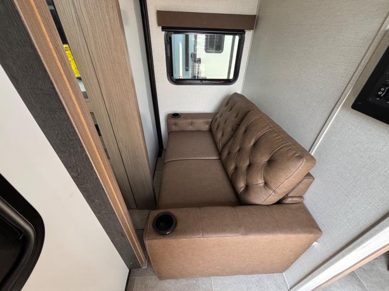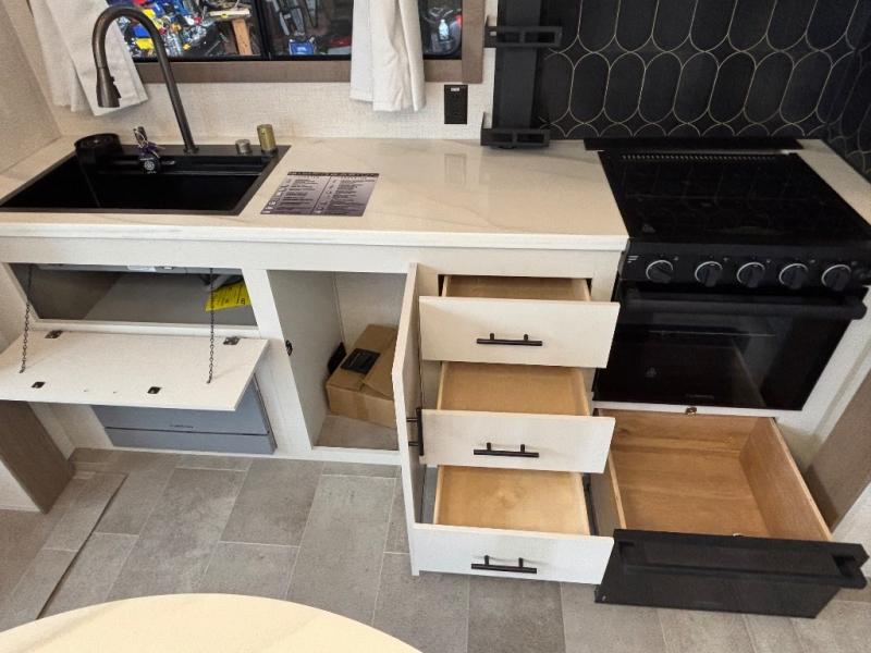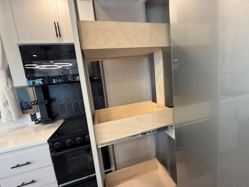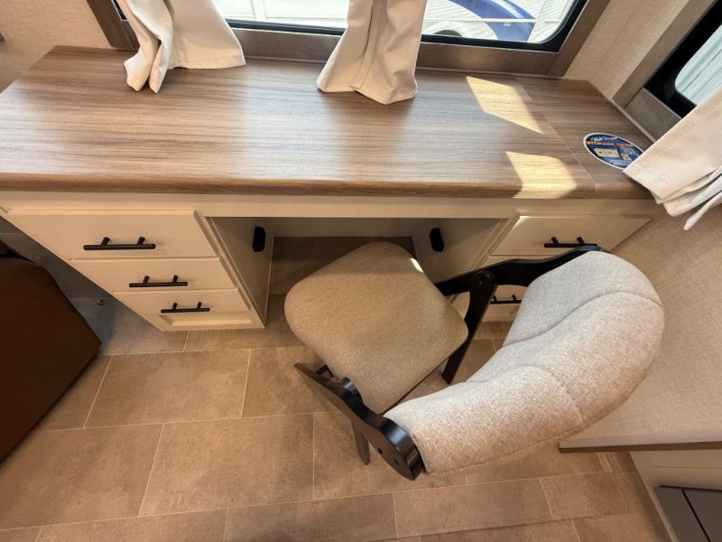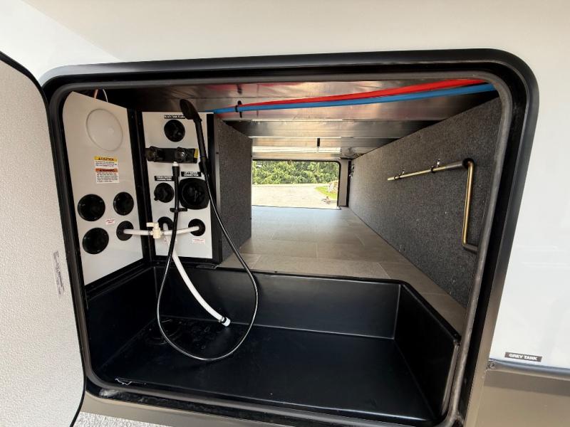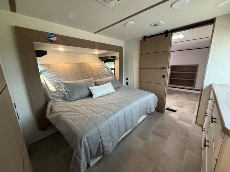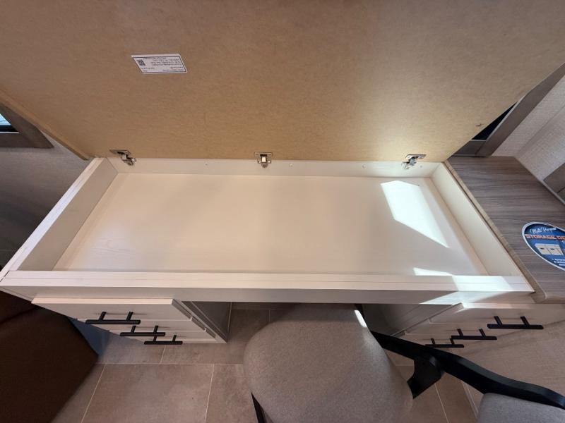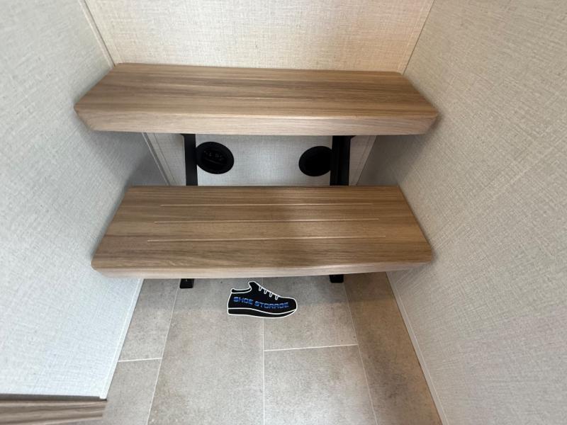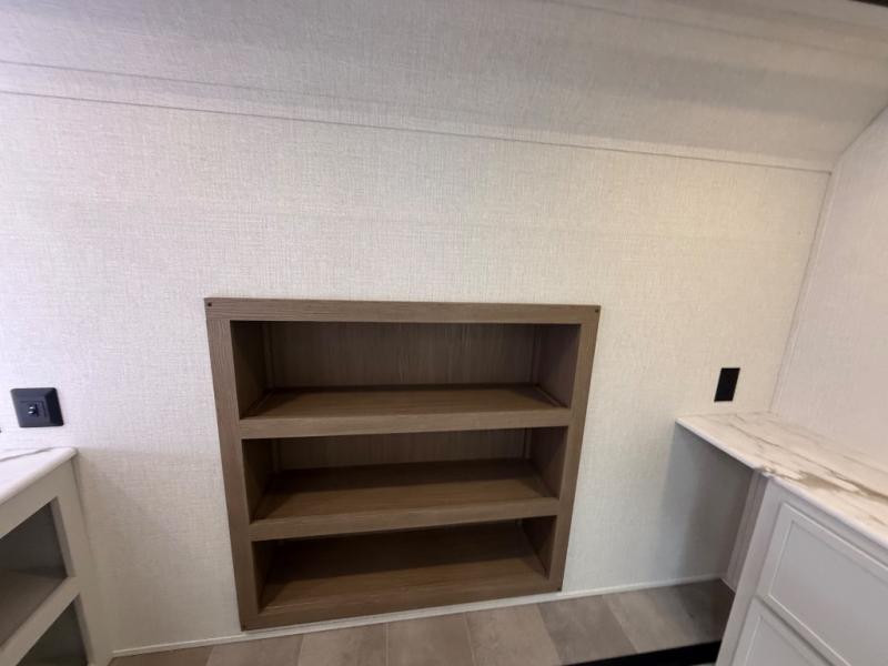 It's easy to see why this fifth wheel was voted Best New Model for 2025 by RV Pro! There are many residential features, such as a middle table with four seats, dual recliners, a desk to get some work done, and a master bedroom you are sure to love. You'll find a king bed with Versa Tilt technology, a dresser, and TV prep. A front master bath includes a walk-in shower with a skylight, dual bath sinks with a back-lit mirror, and a closet with shelves. The middle mud room includes washer/dryer prep, counter space and a pull-out drying rack to hang up swim clothes, towels, and more. Everyone will enjoy spending time in the main living room that includes dual opposing slides, a tri-fold sofa, and an entertainment center with hidden storage behind. And the chef of your group will love the rear kitchen with its 16 cu. ft. 12V refrigerator and pantry, an oven, and plenty of counter space. Head outdoors to enjoy the two power awnings in the evening!