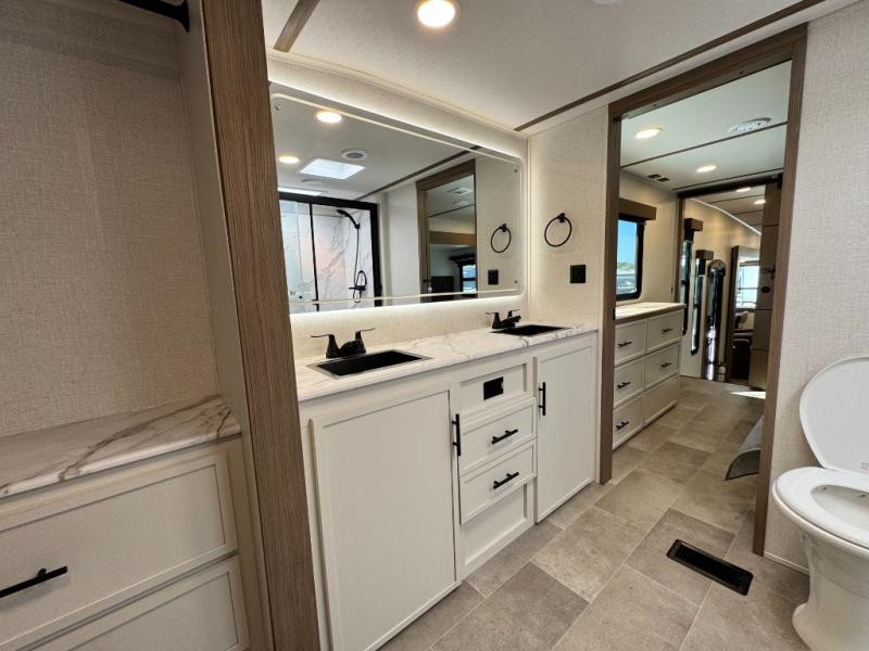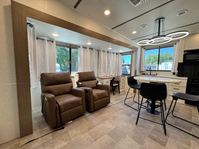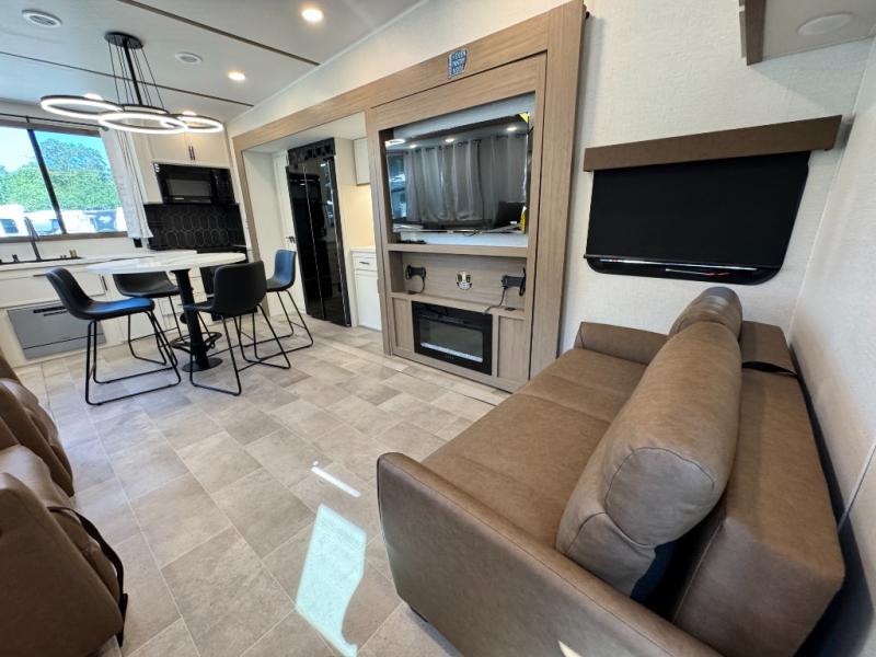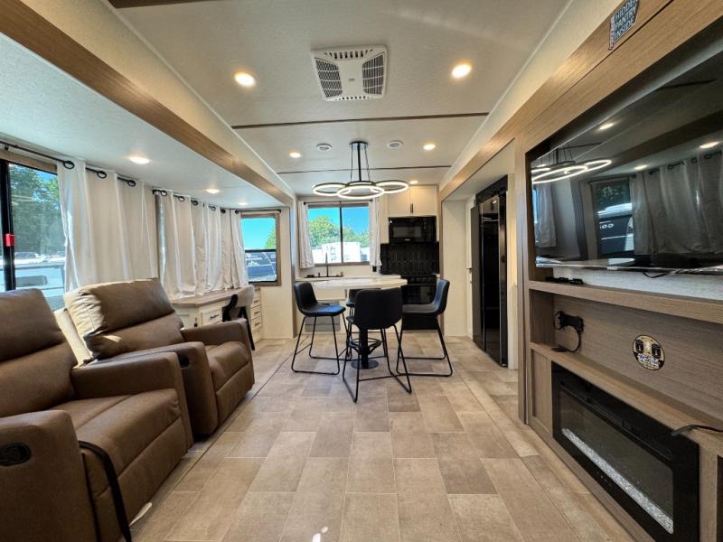 High Gloss Exterior, Dishwasher, 60k On Demand Water Heater, 3,000 Lbs Towable Hitch, Smart Tv, 12v Refrigerator, Tinted Windows, Power Landing Gear &