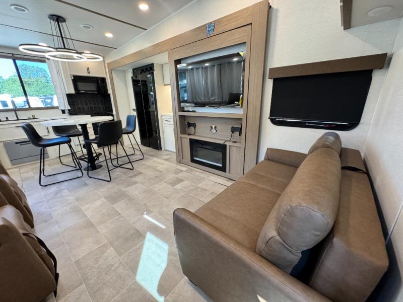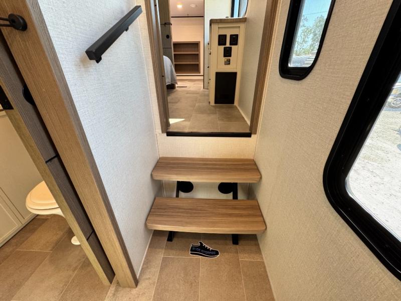 HIGH GLOSS EXTERIOR, 60K ON DEMAND WATER HEATER, 3,000 LBS TOWABLE HITCH, SMART TV, 12V REFRIGERATOR, TINTED WINDOWS, POWER LANDING GEAR & STABILIZER JACKS