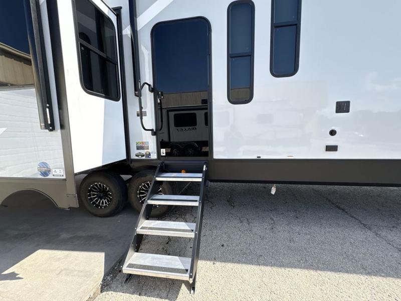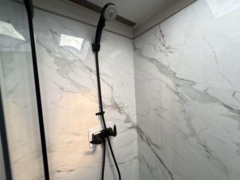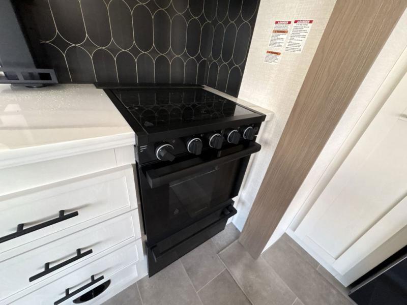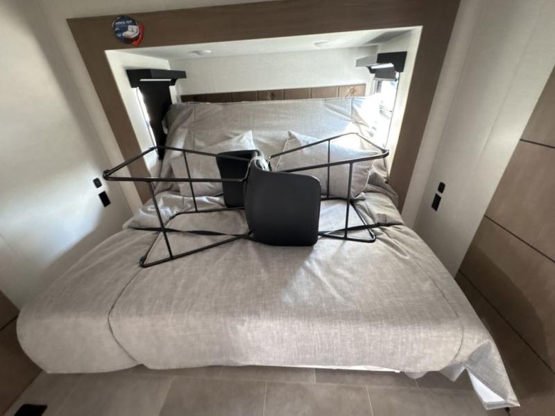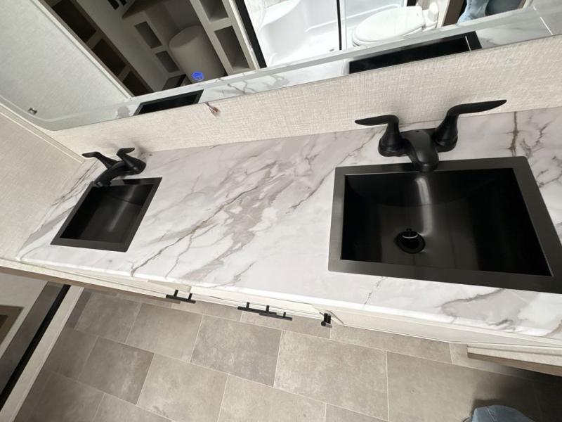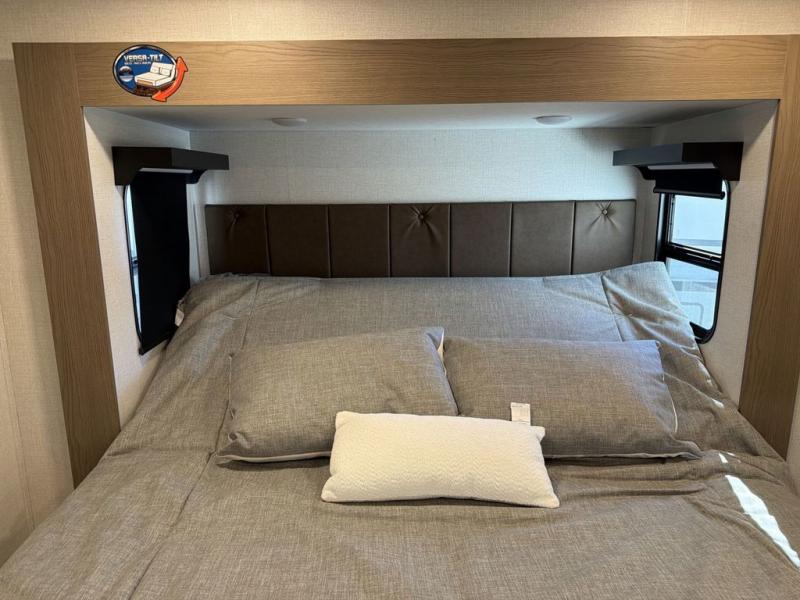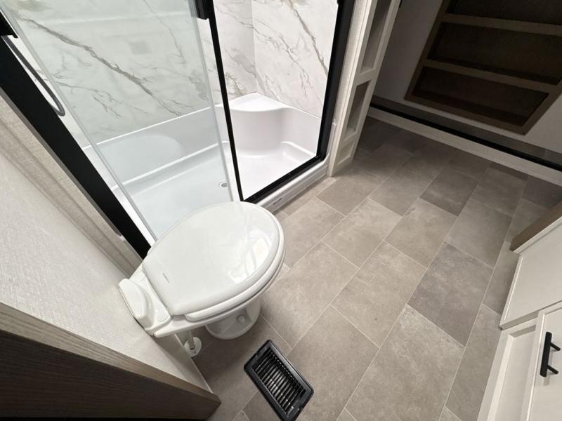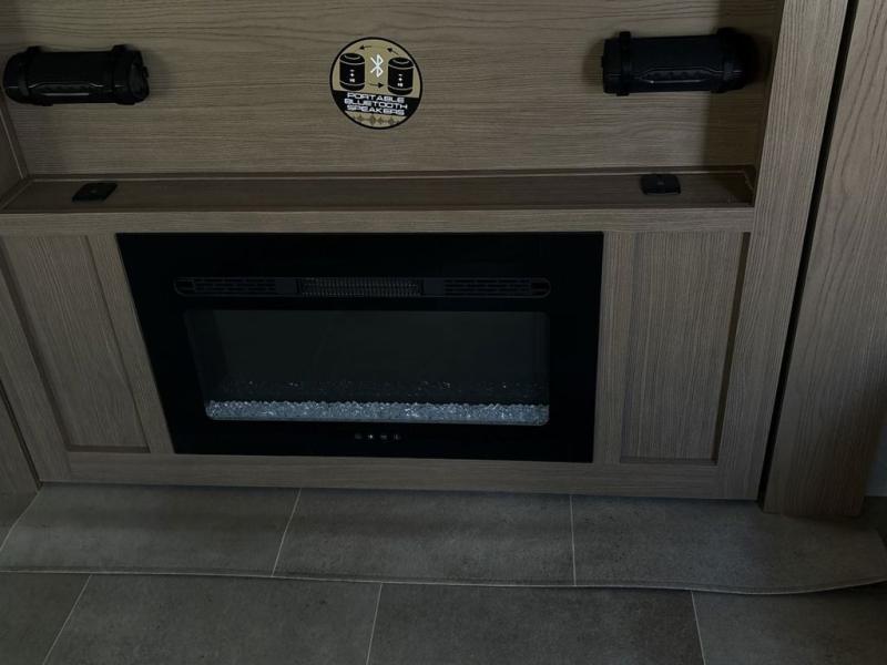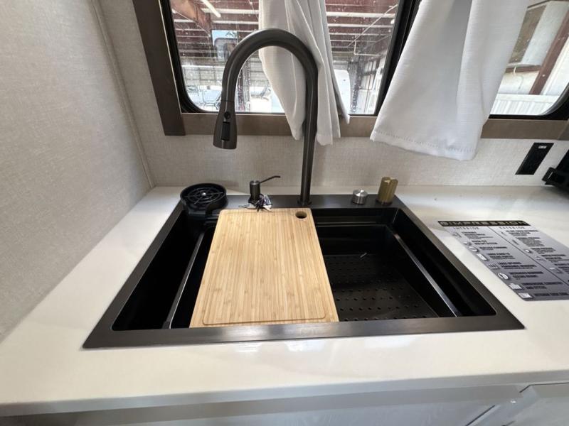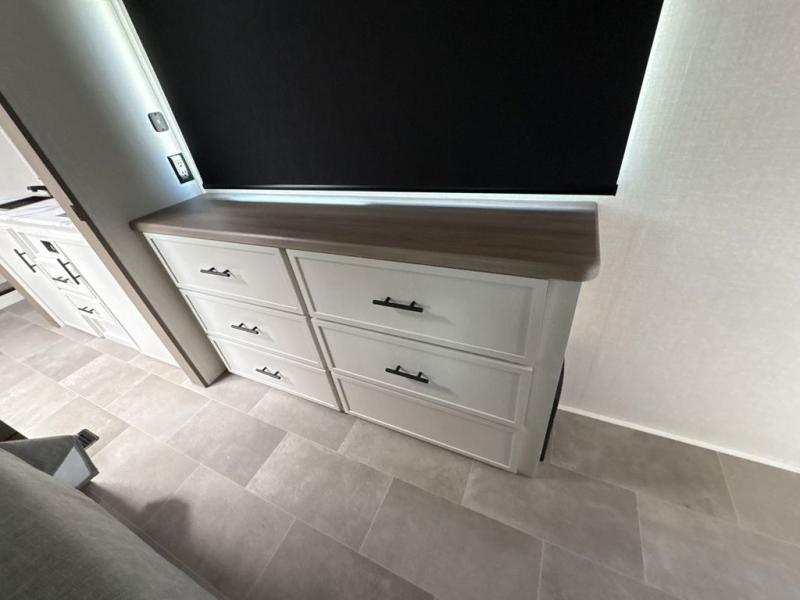 It's easy to see why this fifth wheel was voted Best New Model for 2025 by RV Pro! There are many residential features, such as a middle table with four seats, dual recliners, a desk to get some work done, and a master bedroom you are sure to love. You'll find a king bed with Versa Tilt technology, a dresser, and TV prep. A front master bath includes a walk-in shower with a skylight, dual bath sinks with a back-lit mirror, and a closet with shelves. The middle mud room includes washer/dryer prep, counter space and a pull-out drying rack to hang up swim clothes, towels, and more. Everyone will enjoy spending time in the main living room that includes dual opposing slides, a tri-fold sofa, and an entertainment center with hidden storage behind. And the chef of your group will love the rear kitchen with its 16 cu. ft. 12V refrigerator and pantry, an oven, and plenty of counter space. Head outdoors to enjoy the two power awnings in the evening!