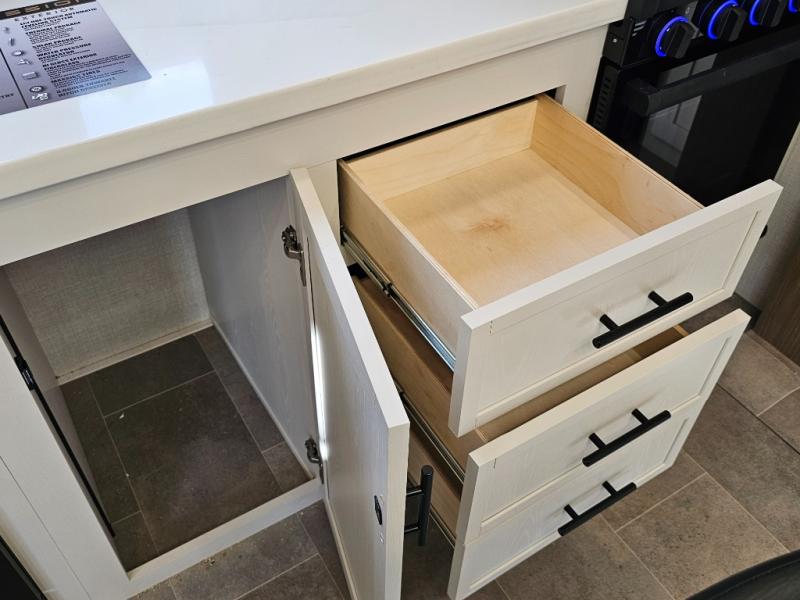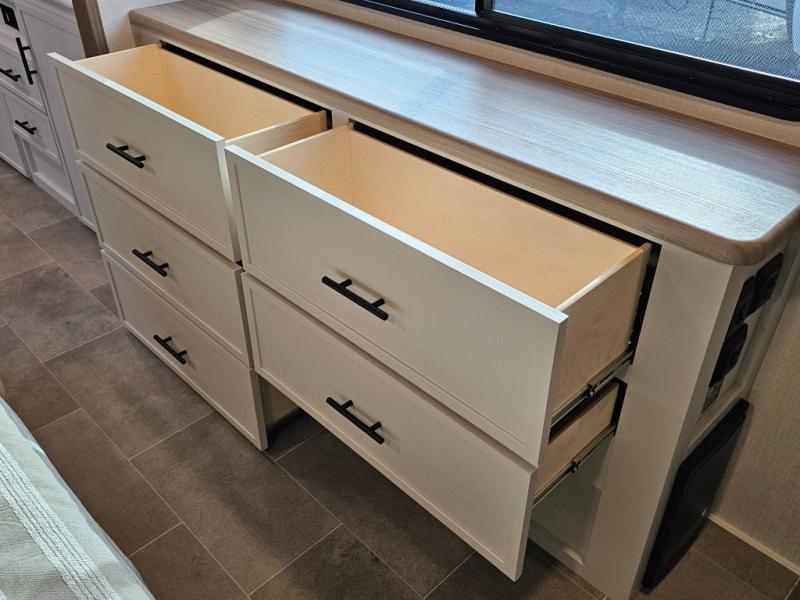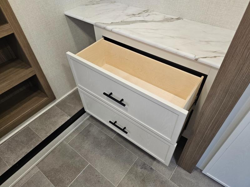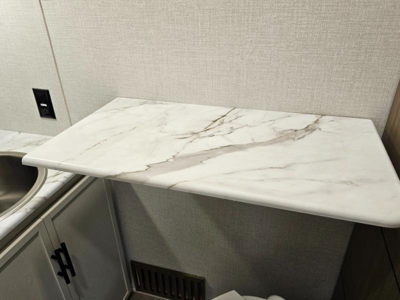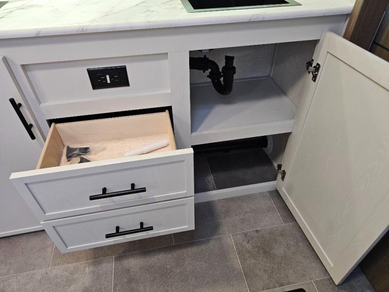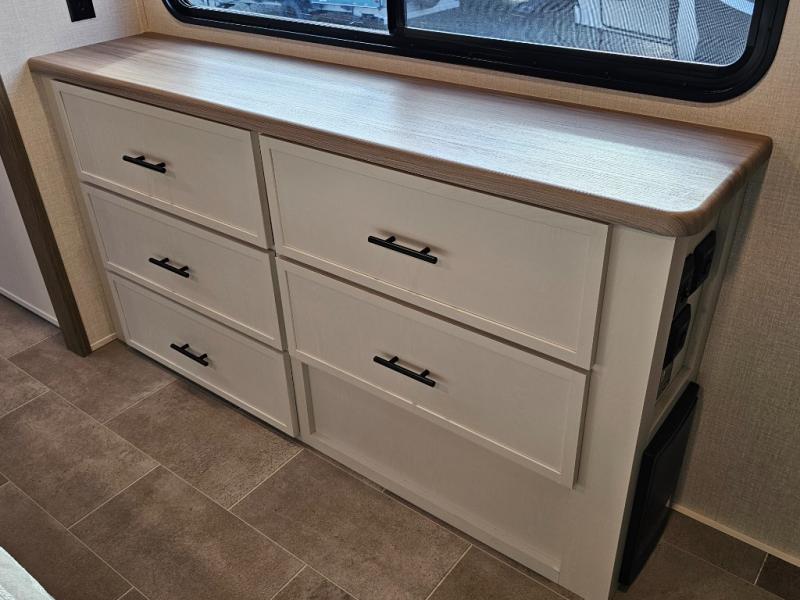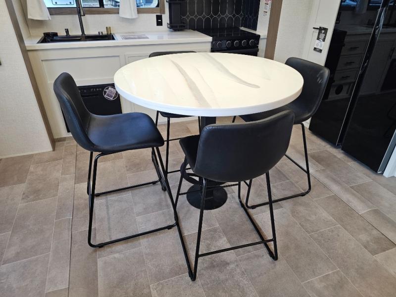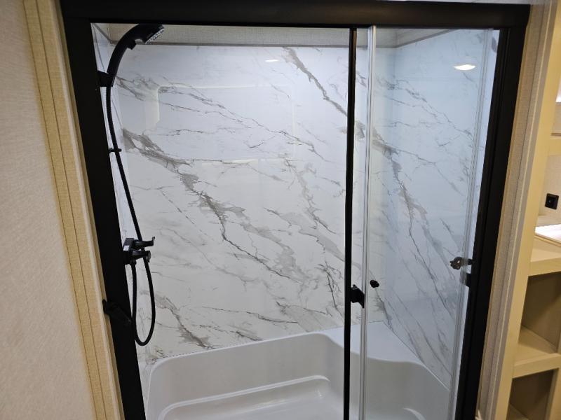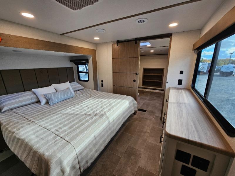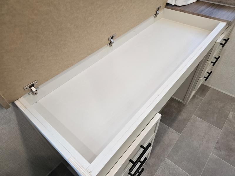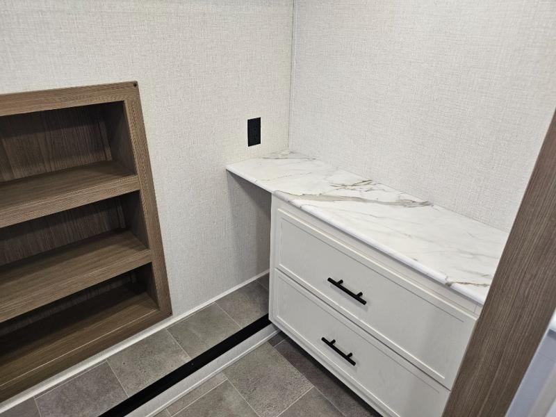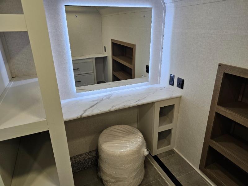 The 360MYR is designed for those who want the comforts of home wherever they travel. With a private bedroom suite, a bath and a half, a spacious rear kitchen, and a dedicated workspace, this floorplan checks every box for luxury, practicality, and long-term comfort on the road.